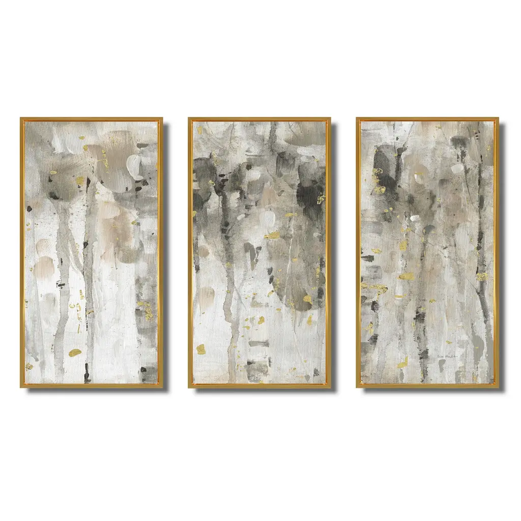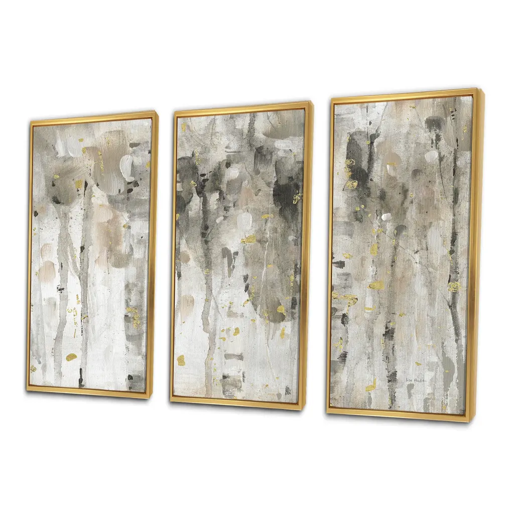 This beautiful The Modern Grey Forest IV 3 Panels Framed Canvas Art is printed using the highest quality fade-resistant ink on canvas. Every one of our fine art giclee canvas prints is printed on premium quality canvas, using the finest quality inks which will not fade over time. Each giclee print is stretched tightly over a 1-inch wood sub frame ensuring the canvas is taught and does not buckle. The canvas print is inserted into a wood floating frame. All of our Framed canvas prints are carefully packaged with corner protection, fragile labeling and sturdy boxes to ensure safe delivery. Every framed canvas print arrives ready to hang on the wall, with the hanging kits included. This framed art print is available in many different color frames. Features: - Style : Farmhouse - Subject : Landscapes, Country Charm - Color : Gold - Premium quality cotton canvas. - Arrives ready to hang on the wall - Easy to Hang