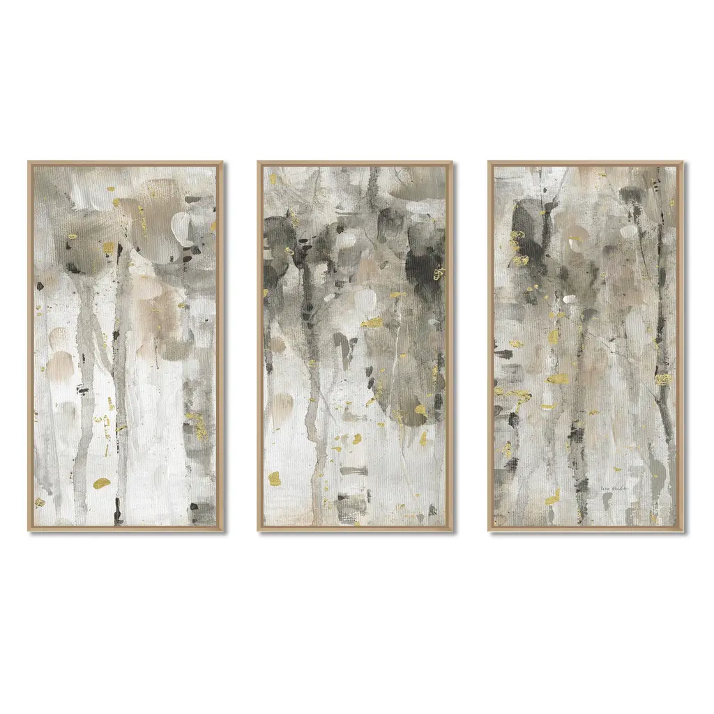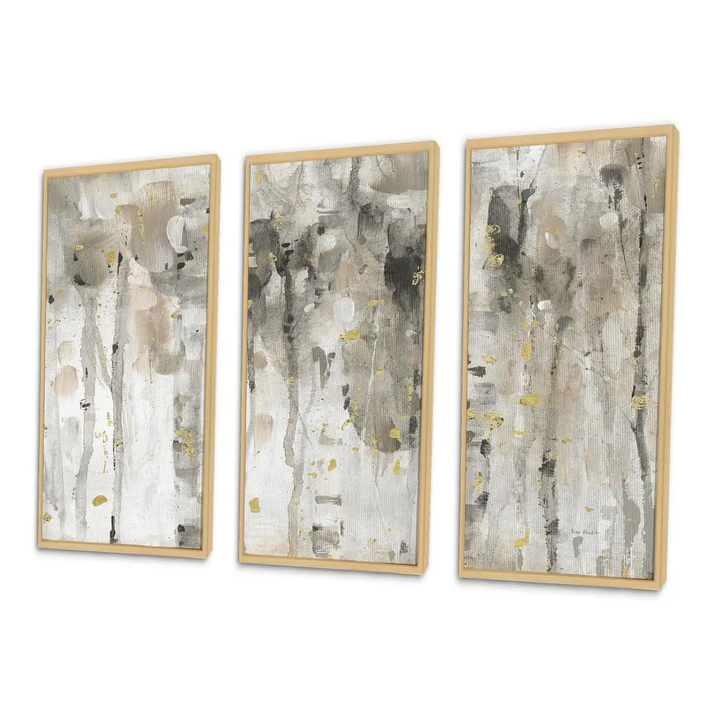 This beautiful The Modern Grey Forest IV 3 Panels Framed Canvas Art is printed using the highest quality fade-resistant ink on canvas. Every one of our fine art giclee canvas prints is printed on premium quality canvas, using the finest quality inks which will not fade over time. Each giclee print is stretched tightly over a 1-inch wood sub frame ensuring the canvas is taught and does not buckle. The canvas print is inserted into a wood floating frame. All of our Framed canvas prints are carefully packaged with corner protection, fragile labeling and sturdy boxes to ensure safe delivery. Every framed canvas print arrives ready to hang on the wall, with the hanging kits included. This framed art print is available in many different color frames. Features: - Style : Farmhouse - Subject : Landscapes, Country Charm - Color : Gold - Premium quality cotton canvas. - Arrives ready to hang on the wall - Easy to Hang