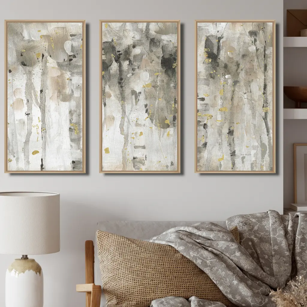 This beautiful The Modern Grey Forest IV 3 Panels Framed Canvas Art is printed using the highest quality fade-resistant ink on canvas. Every one of our fine art giclee canvas prints is printed on premium quality canvas, using the finest quality inks which will not fade over time. Each giclee print is stretched tightly over a 1-inch wood sub frame ensuring the canvas is taught and does not buckle. The canvas print is inserted into a wood floating frame. All of our Framed canvas prints are carefully packaged with corner protection, fragile labeling and sturdy boxes to ensure safe delivery. Every framed canvas print arrives ready to hang on the wall, with the hanging kits included. This framed art print is available in many different color frames. Features: - Style : Farmhouse - Subject : Landscapes, Country Charm - Color : Gold - Premium quality cotton canvas. - Arrives ready to hang on the wall - Easy to Hang