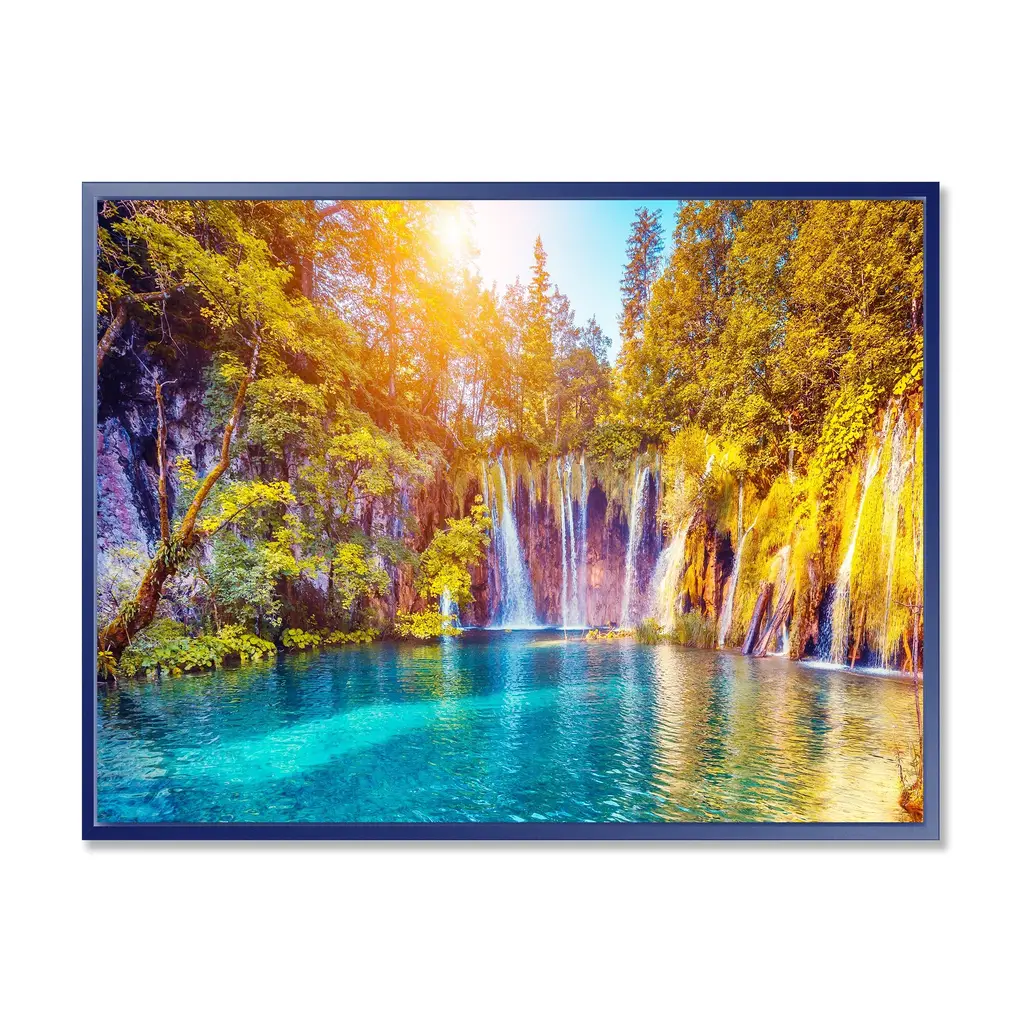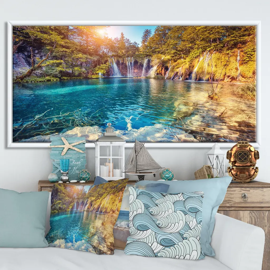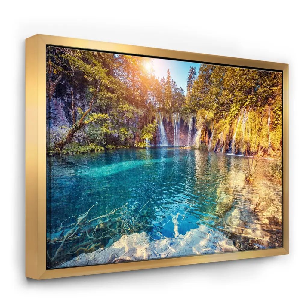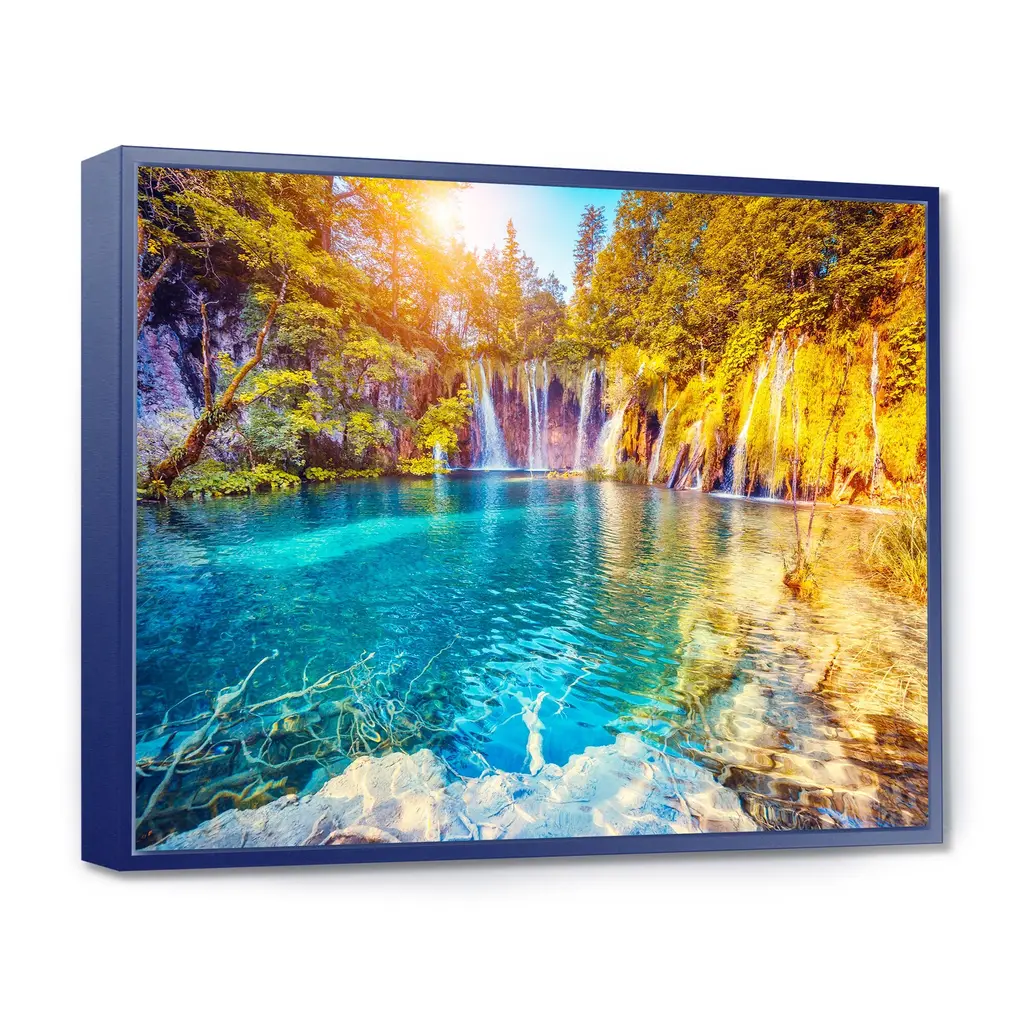 Designart "Turquoise Water And Sunny Beams" Landscape Photography Framed Canvas Print - 40 In. Wide X 30 In. High - Black