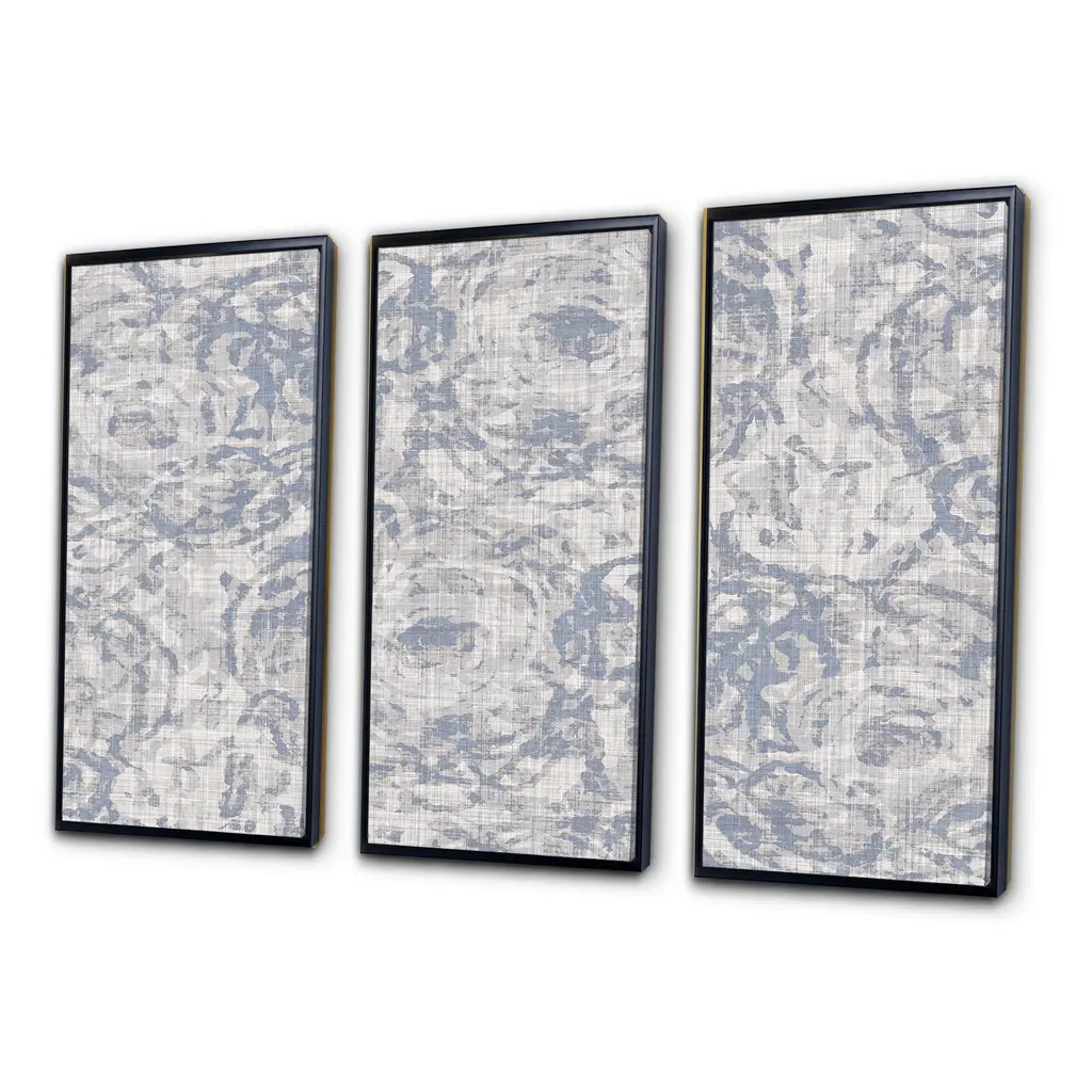 This beautiful Vintage Blue Farmhouse Flower IV 3 Panels Framed Canvas Art is printed using the highest quality fade-resistant ink on canvas. Every one of our fine art giclee canvas prints is printed on premium quality canvas, using the finest quality inks which will not fade over time. Each giclee print is stretched tightly over a 1-inch wood sub frame ensuring the canvas is taught and does not buckle. The canvas print is inserted into a wood floating frame. All of our Framed canvas prints are carefully packaged with corner protection, fragile labeling and sturdy boxes to ensure safe delivery. Every framed canvas print arrives ready to hang on the wall, with the hanging kits included. This framed art print is available in many different color frames. Features: - Style : Modern & Contemporary - Subject : Abstract, - Color : Grey - Premium quality cotton canvas. - Arrives ready to hang on the wall - Easy to Hang