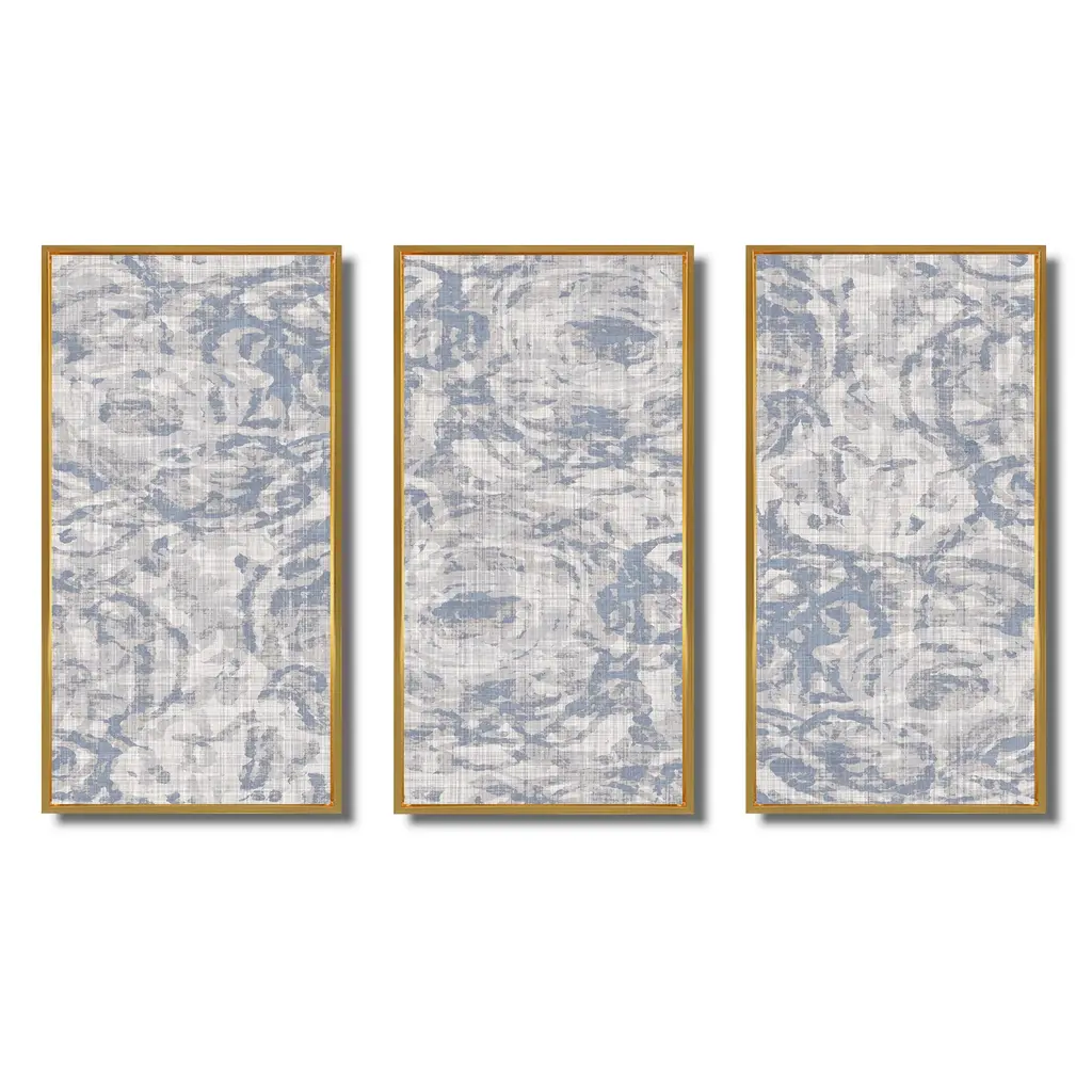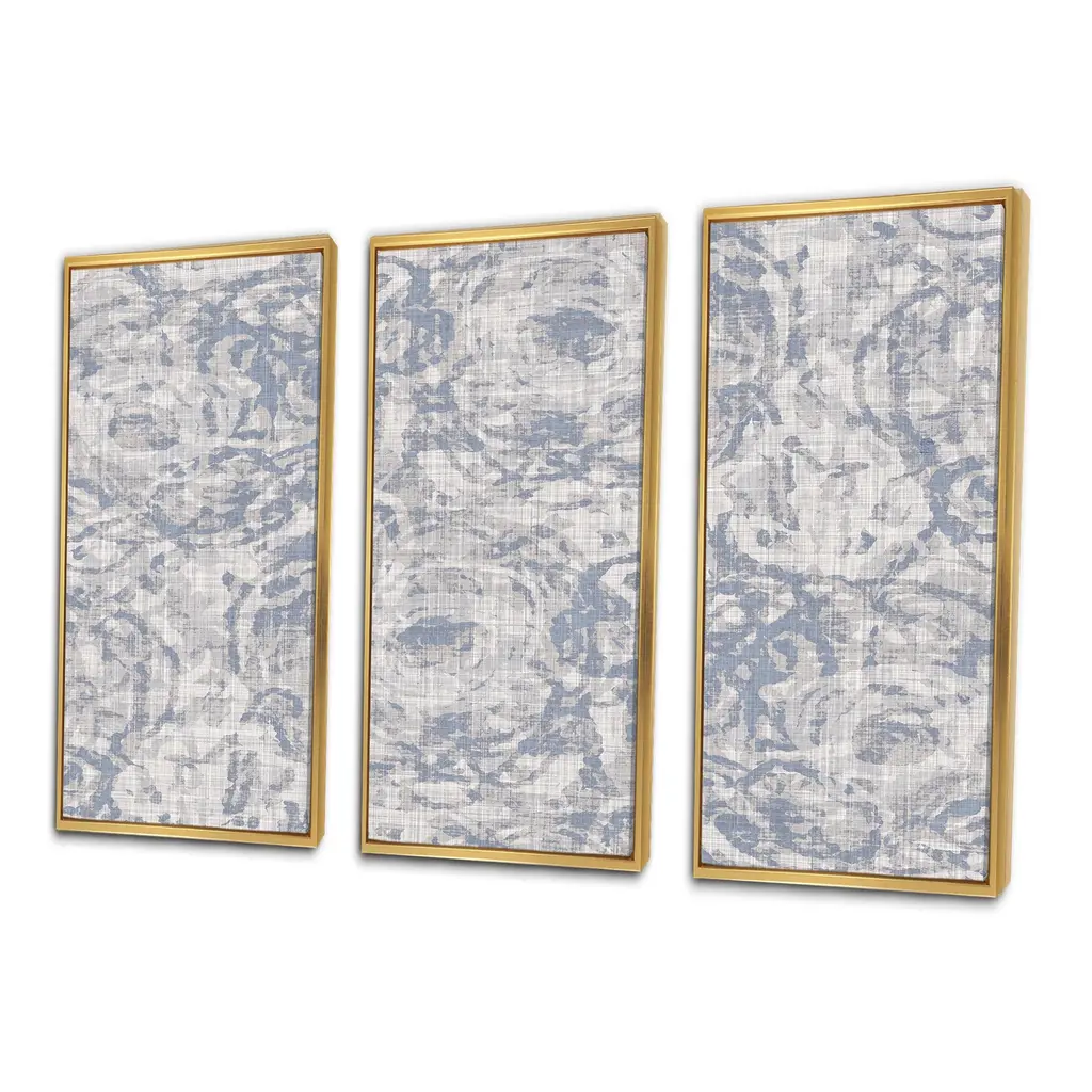 This beautiful Vintage Blue Farmhouse Flower IV 3 Panels Framed Canvas Art is printed using the highest quality fade-resistant ink on canvas. Every one of our fine art giclee canvas prints is printed on premium quality canvas, using the finest quality inks which will not fade over time. Each giclee print is stretched tightly over a 1-inch wood sub frame ensuring the canvas is taught and does not buckle. The canvas print is inserted into a wood floating frame. All of our Framed canvas prints are carefully packaged with corner protection, fragile labeling and sturdy boxes to ensure safe delivery. Every framed canvas print arrives ready to hang on the wall, with the hanging kits included. This framed art print is available in many different color frames. Features: - Style : Modern & Contemporary - Subject : Abstract, - Color : Grey - Premium quality cotton canvas. - Arrives ready to hang on the wall - Easy to Hang
