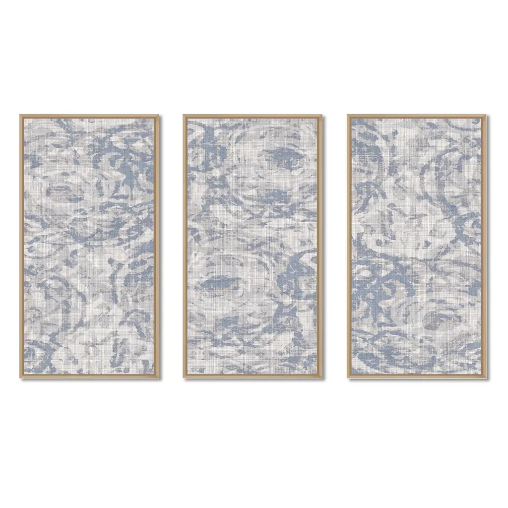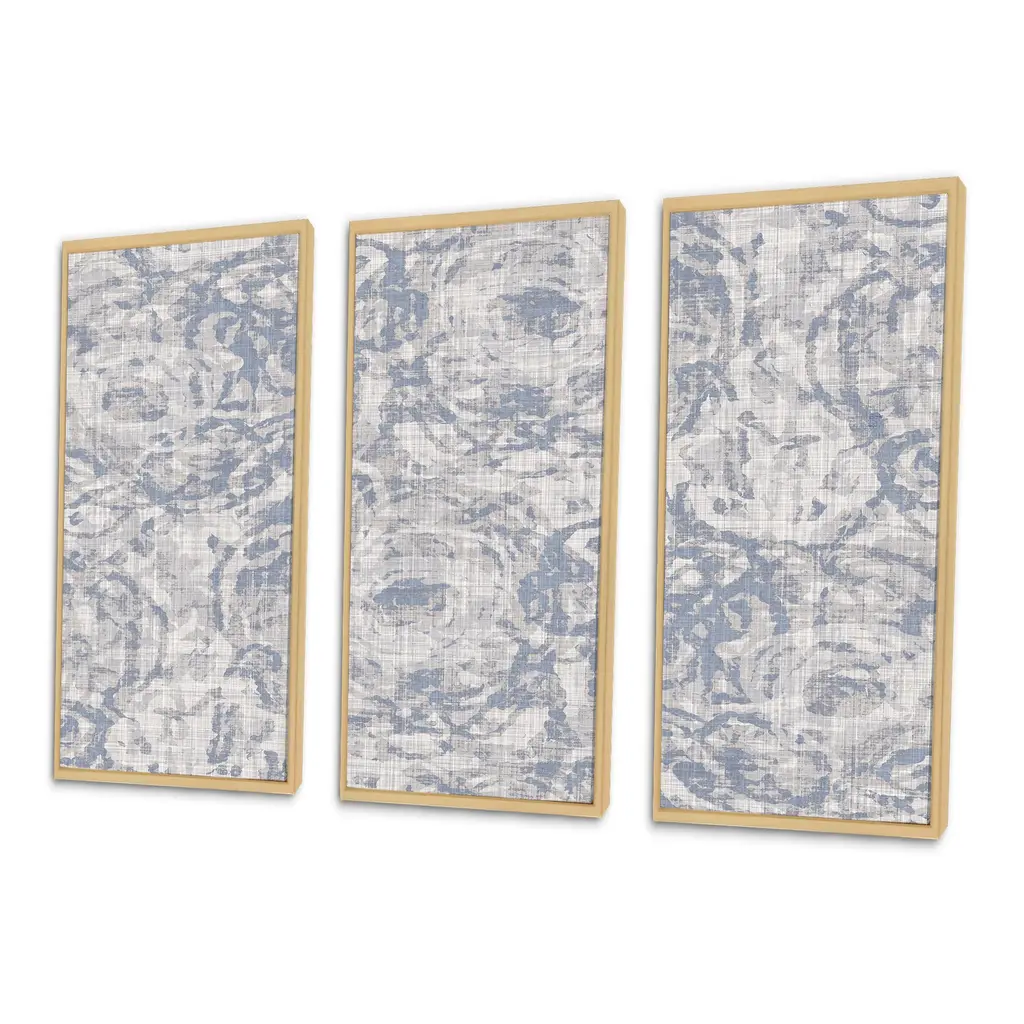 This beautiful Vintage Blue Farmhouse Flower IV 3 Panels Framed Canvas Art is printed using the highest quality fade-resistant ink on canvas. Every one of our fine art giclee canvas prints is printed on premium quality canvas, using the finest quality inks which will not fade over time. Each giclee print is stretched tightly over a 1-inch wood sub frame ensuring the canvas is taught and does not buckle. The canvas print is inserted into a wood floating frame. All of our Framed canvas prints are carefully packaged with corner protection, fragile labeling and sturdy boxes to ensure safe delivery. Every framed canvas print arrives ready to hang on the wall, with the hanging kits included. This framed art print is available in many different color frames. Features: - Style : Modern & Contemporary - Subject : Abstract, - Color : Grey - Premium quality cotton canvas. - Arrives ready to hang on the wall - Easy to Hang