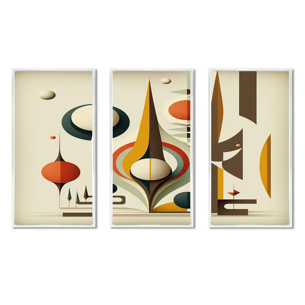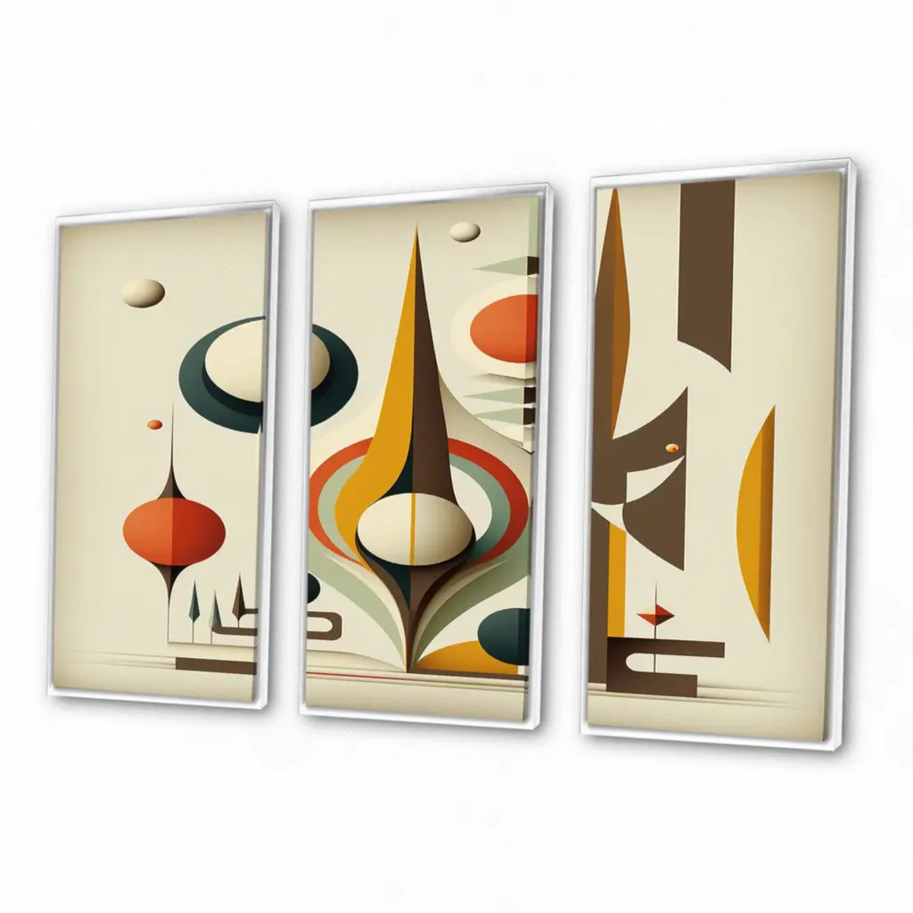 Designart "Vintage Mid-Century Graphics Vi" Modern Midcentury Framed Canvas Wall Art Print - 3 Panels - White - 36 In. Wide X 20 In. High - 3 Panels