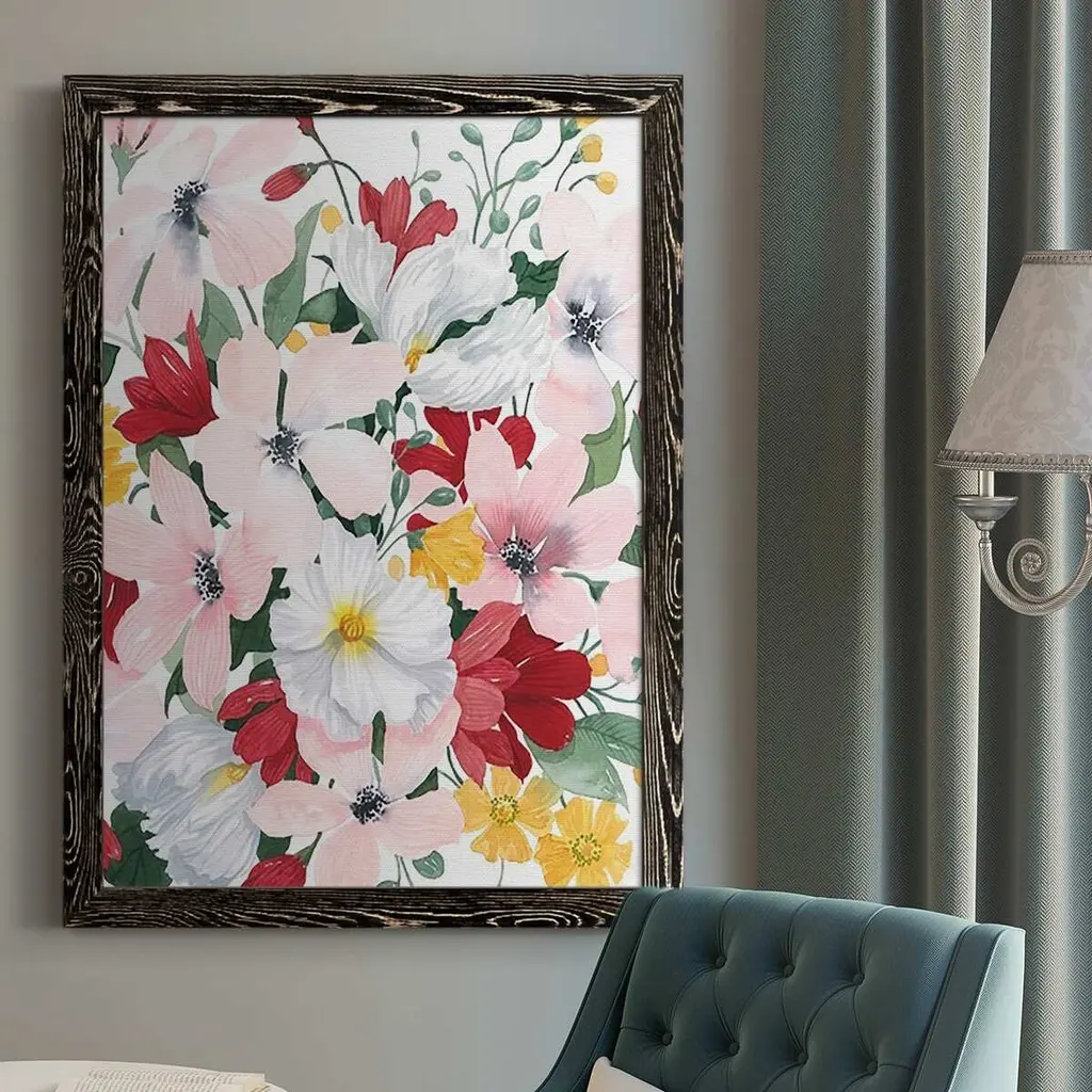 This beautiful Vintage Spring Garden Flowers Framed wall Art is printed using the highest quality fade resistant ink on canvas. Every one of our Framed Giclee Prints is printed on premium quality canvas, using the finest quality inks which will not fade over time and then mounted and framed on a 1.5 inch wide frame. This framed art print is available in many different color frames. All of our framed art prints are carefully packaged with corner protectors, fragile labeling, and sturdy boxes to ensure a safe delivery. Every framed art arrives ready to hang on the wall, with the hanging kit included. Features: - Style : Traditional - Subject : Floral, Floral & Botanical, Seasonal Flowers, Assorted Bouquets - Color : Red - Premium quality cotton canvas mounted. - Available in several frame colors. - Arrives with instructions and hanging kit
