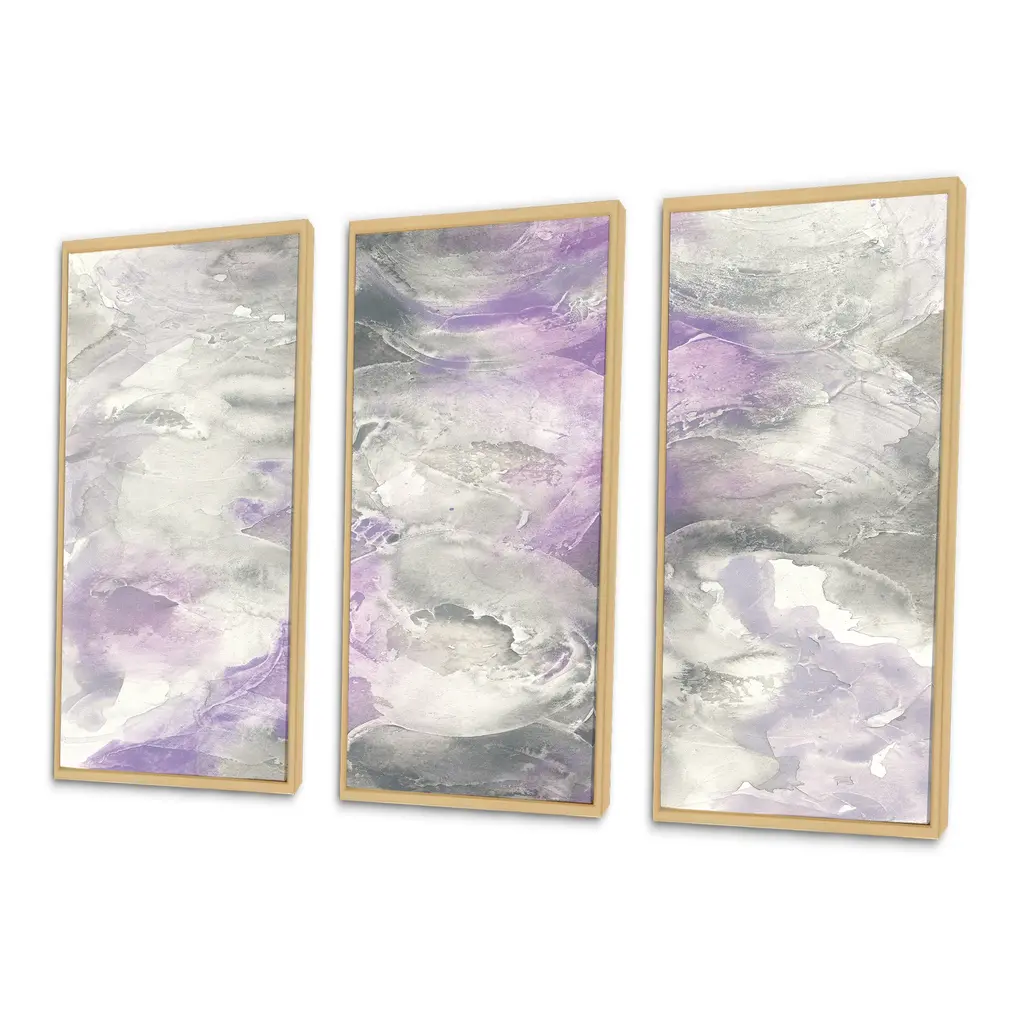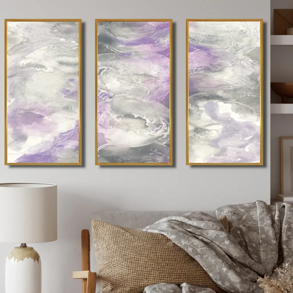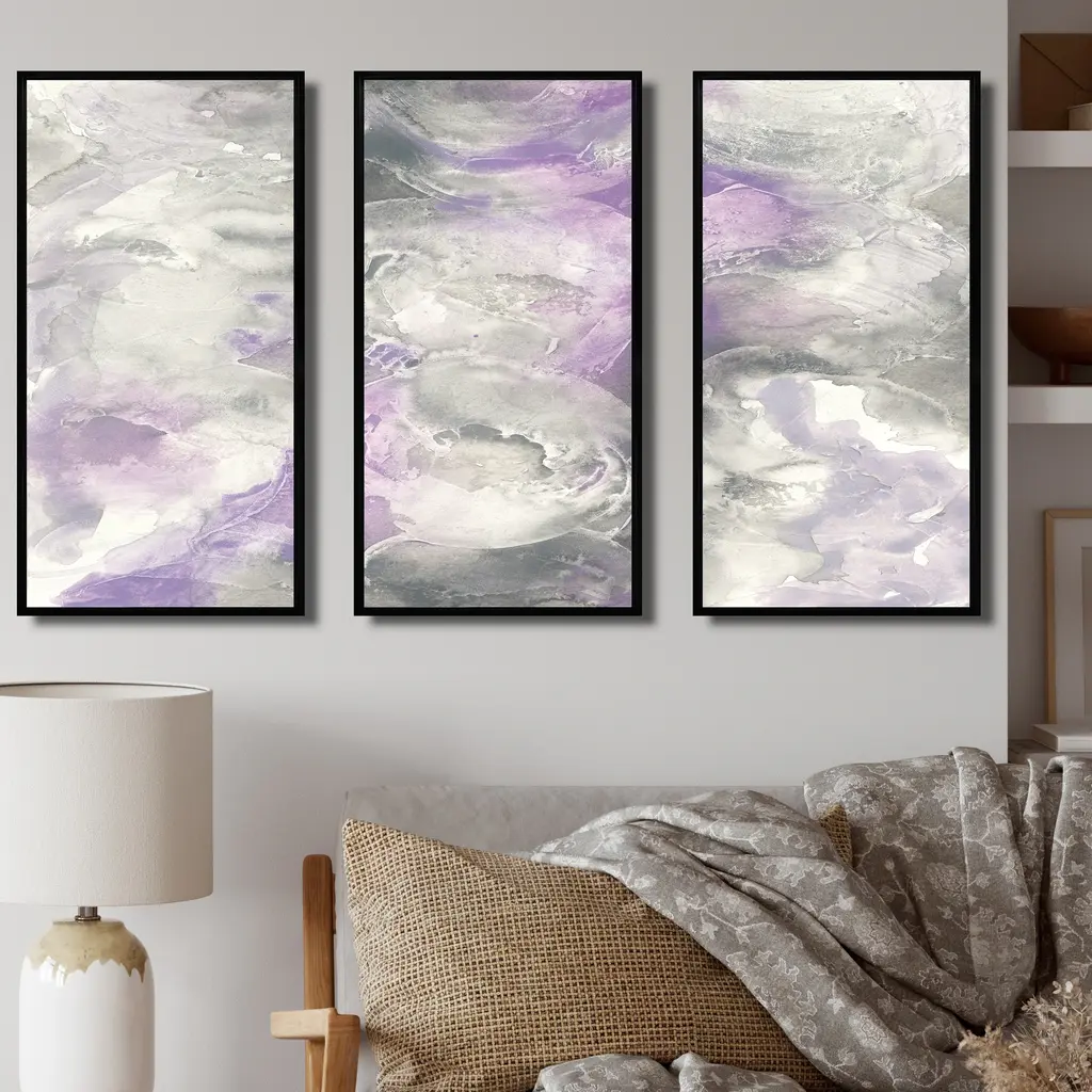 This beautiful Watercolor Minimal Purple Tones III 3 Panels Framed Canvas Art is printed using the highest quality fade-resistant ink on canvas. Every one of our fine art giclee canvas prints is printed on premium quality canvas, using the finest quality inks which will not fade over time. Each giclee print is stretched tightly over a 1-inch wood sub frame ensuring the canvas is taught and does not buckle. The canvas print is inserted into a wood floating frame. All of our Framed canvas prints are carefully packaged with corner protection, fragile labeling and sturdy boxes to ensure safe delivery. Every framed canvas print arrives ready to hang on the wall, with the hanging kits included. This framed art print is available in many different color frames. Features: - Style : Farmhouse - Subject : Country Charm, Cottage - Color : Purple - Premium quality cotton canvas. - Arrives ready to hang on the wall - Easy to Hang