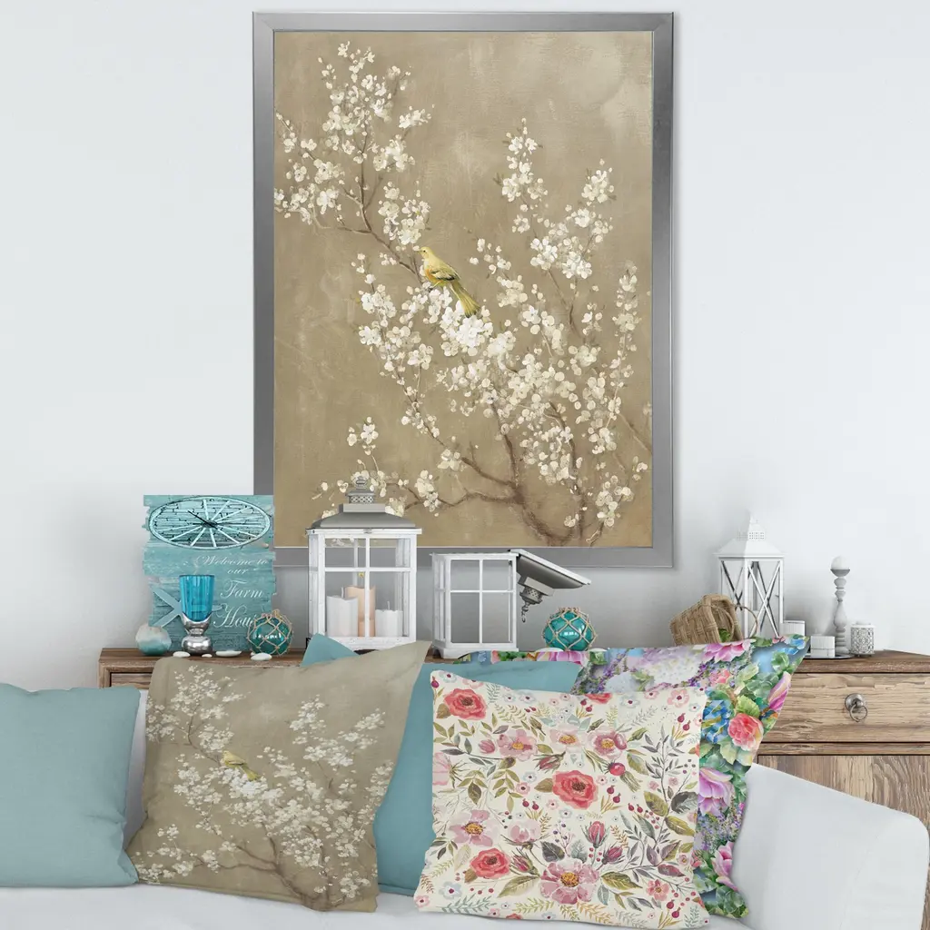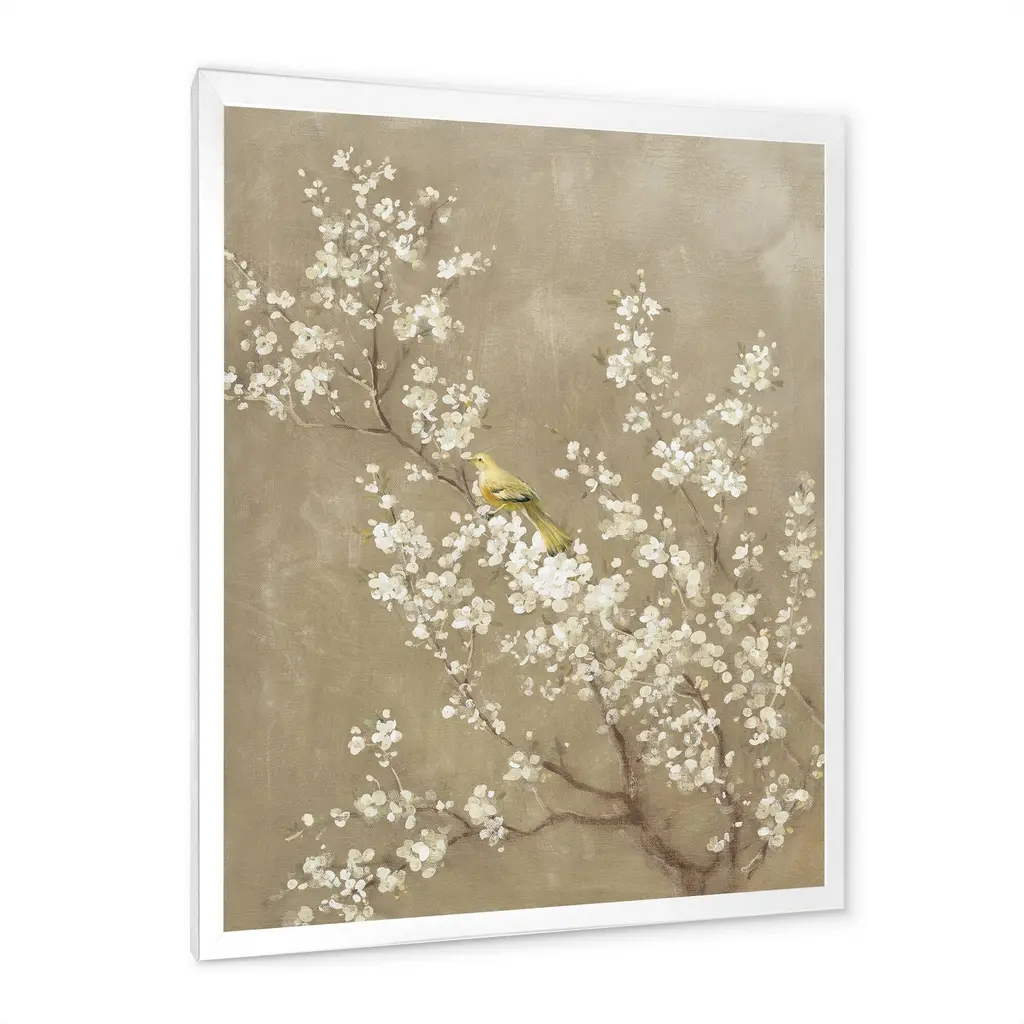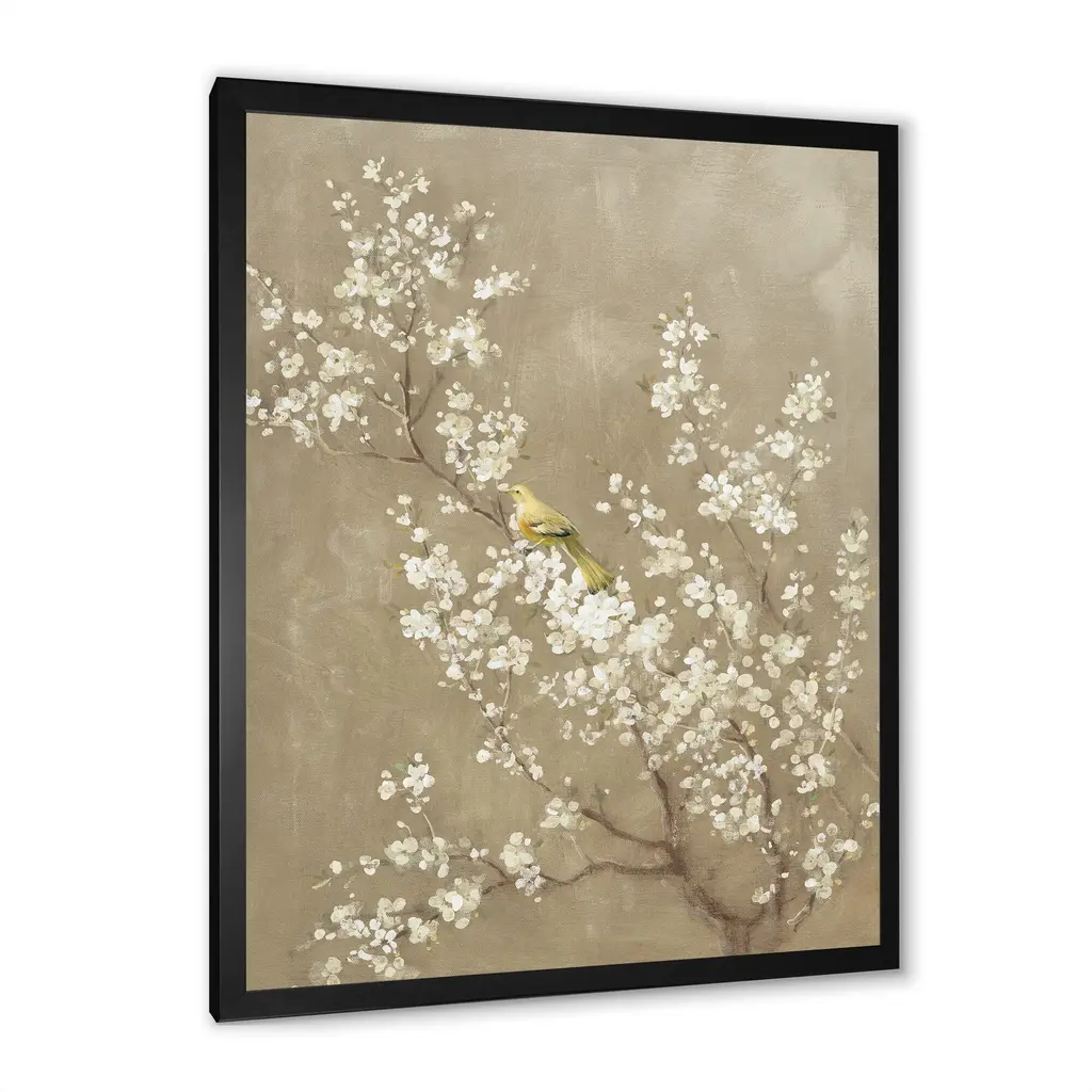 Soothe your eyes with the calming tones and serene cherry blossom view depicted by this wall art. Thanks to a modern technique that uses quality inks, this print remains fade-resistant to preserve its gorgeous visuals and look impressive time after time. Exhibit this spring-themed art print immediately upon arrival, as it comes mounted onto a robust frame and also includes a complete hanging kit and instructions for ready-to-hang convenience. Different frame colors are available to complement your existing color scheme seamlessly.This framed art print is available in many different color frames. All of our framed art prints are carefully packaged with corner protectors, fragile labeling, and sturdy boxes to ensure a safe delivery. Every framed art arrives ready to hang on the wall, with the hanging kit included.Features:Style : TraditionalSubject : FloralColor : WhitePremium quality cotton canvas mounted.Available in several frame colors. Arrives with instructions and hanging kit