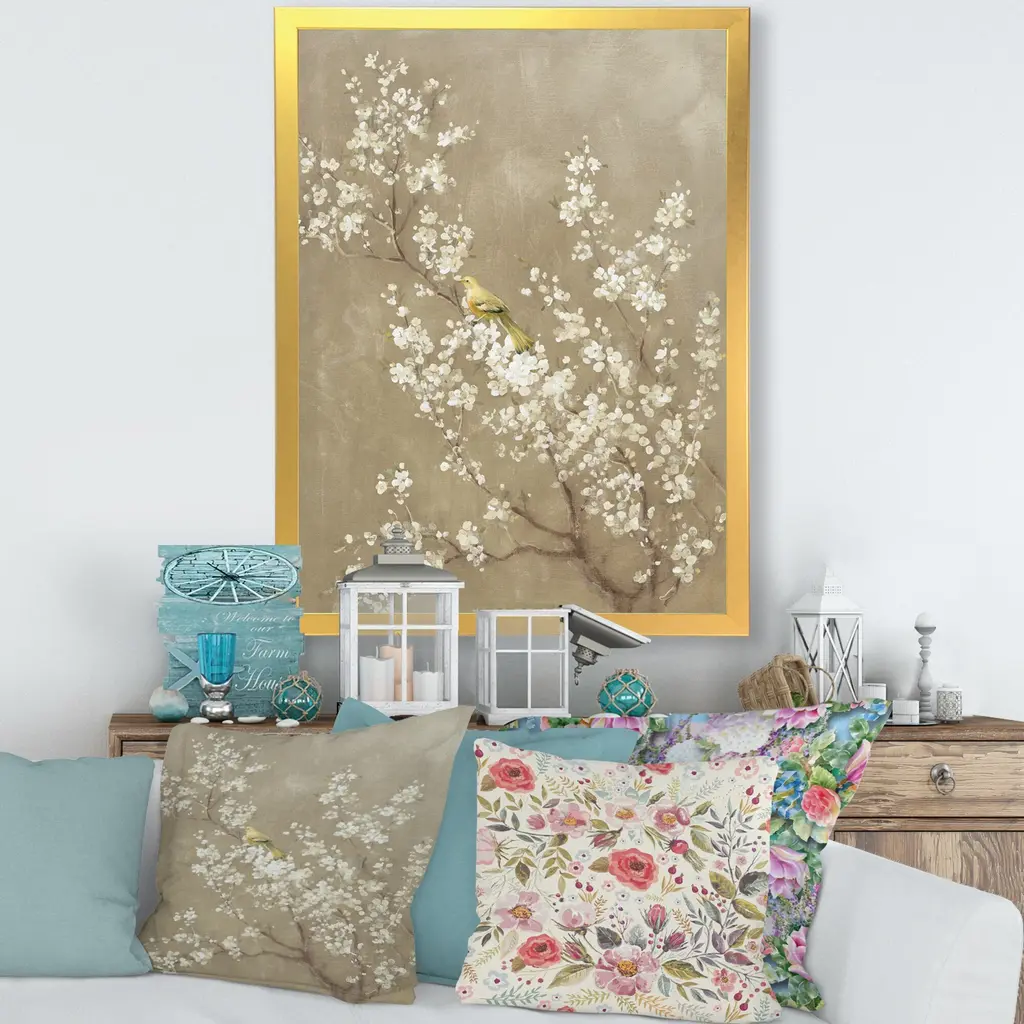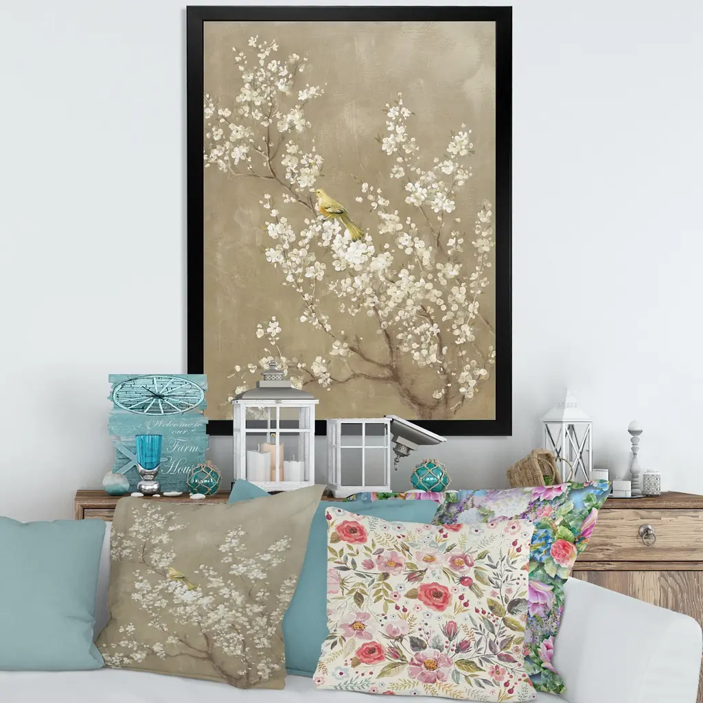 Soothe your eyes with the calming tones and serene cherry blossom view depicted by this wall art. Thanks to a modern technique that uses quality inks, this print remains fade-resistant to preserve its gorgeous visuals and look impressive time after time. Exhibit this spring-themed art print immediately upon arrival, as it comes mounted onto a robust frame and also includes a complete hanging kit and instructions for ready-to-hang convenience. Different frame colors are available to complement your existing color scheme seamlessly.This framed art print is available in many different color frames. All of our framed art prints are carefully packaged with corner protectors, fragile labeling, and sturdy boxes to ensure a safe delivery. Every framed art arrives ready to hang on the wall, with the hanging kit included.Features:Style : TraditionalSubject : FloralColor : WhitePremium quality cotton canvas mounted.Available in several frame colors. Arrives with instructions and hanging kit