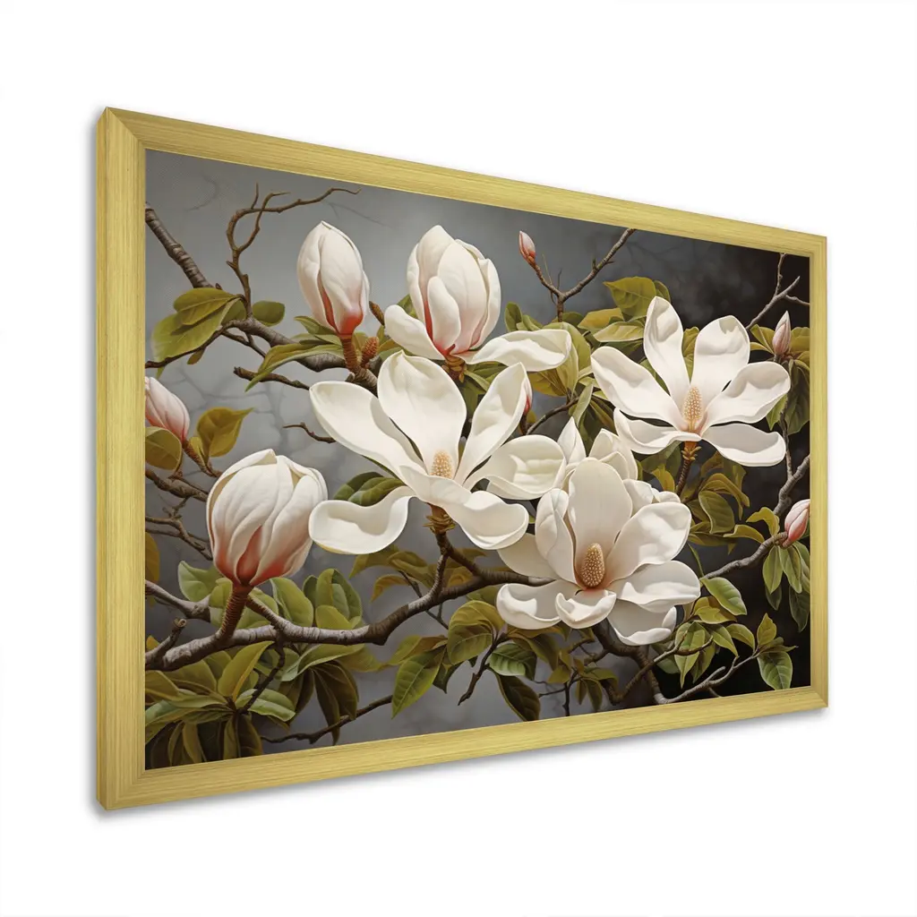 This beautiful "White Green Magnolias Magnolia Serenity" Framed wall Art is printed using the highest quality fade-resistant ink on canvas. Every one of our Floral Wall art printed on premium quality cotton canvas, Each Traditional Canvas print is stretched tightly over a 1-inch wood sub frame for small size prints or a 1.5-inch wood sub frame for large size prints (40x30 44x34 ...) ensuring the canvas is taught and does not buckle. All of our Framed Canvas Prints are carefully packaged with corner protection, fragile labeling and sturdy boxes to ensure safe delivery. Every framed canvas print arrives ready to hang on the wall, with the hanging kits included. This framed art print is available in many different color frames. Features: - Style : Traditional, Cabin & Lodge - Subject : Floral, Country Charm - Color : White; Green - Premium quality cotton canvas. - Arrives ready to hang on the wall - Frame Tickness : 1 inch - Frame Width : 1.5 inch Wide - Easy to Hang