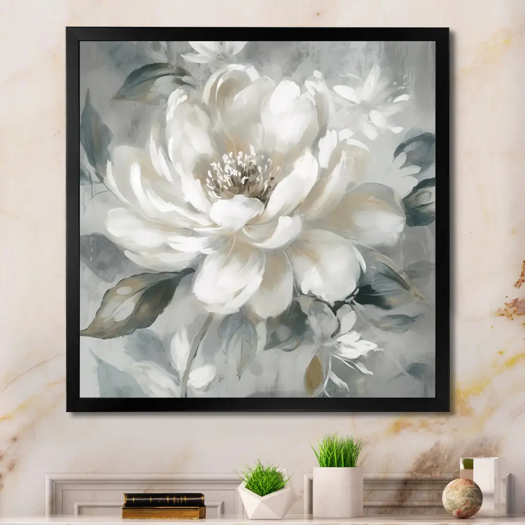 This beautiful 'White Grey Peony Blooms In Motion I' Framed wall Art is printed using the highest quality fade-resistant ink on canvas. Every one of our fine art giclee canvas prints is printed on premium quality canvas, using the finest quality inks which will not fade over time, and then mounted and framed on a 1.5 inch wide frame. All of our Framed canvas prints are carefully packaged with corner protection, fragile labeling and sturdy boxes to ensure safe delivery. Every framed canvas print arrives ready to hang on the wall, with the hanging kits included. This framed art print is available in many different color frames. Features: - Style : Modern & Contemporary - Subject : Floral - Color : White - Premium quality cotton canvas. - Arrives ready to hang on the wall - Frame Tickness : 1 inch - Frame Width : 1.5 inch Wide - Easy to Hang