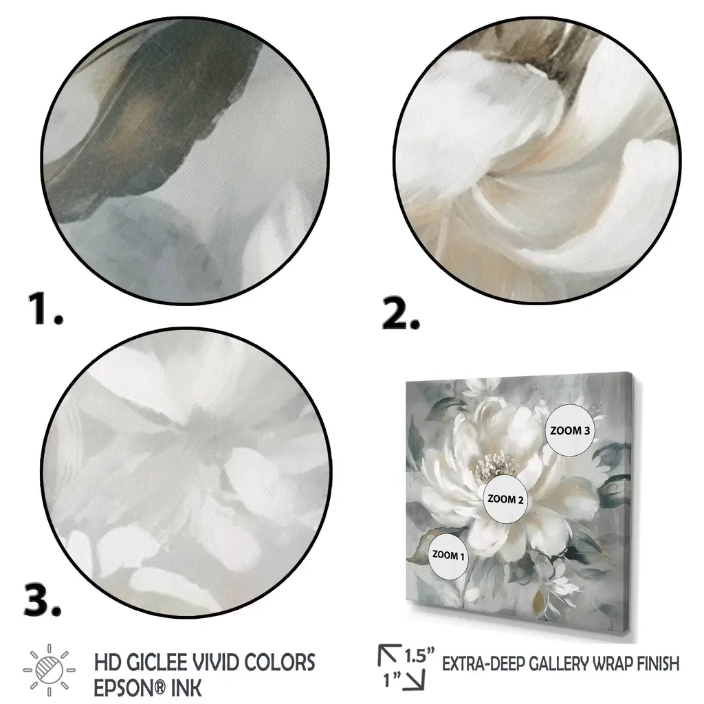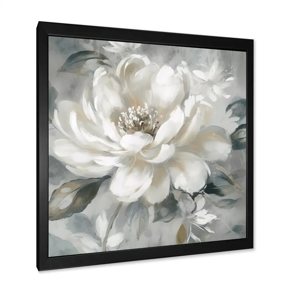 This beautiful 'White Grey Peony Blooms In Motion I' Framed wall Art is printed using the highest quality fade-resistant ink on canvas. Every one of our fine art giclee canvas prints is printed on premium quality canvas, using the finest quality inks which will not fade over time, and then mounted and framed on a 1.5 inch wide frame. All of our Framed canvas prints are carefully packaged with corner protection, fragile labeling and sturdy boxes to ensure safe delivery. Every framed canvas print arrives ready to hang on the wall, with the hanging kits included. This framed art print is available in many different color frames. Features: - Style : Modern & Contemporary - Subject : Floral - Color : White - Premium quality cotton canvas. - Arrives ready to hang on the wall - Frame Tickness : 1 inch - Frame Width : 1.5 inch Wide - Easy to Hang