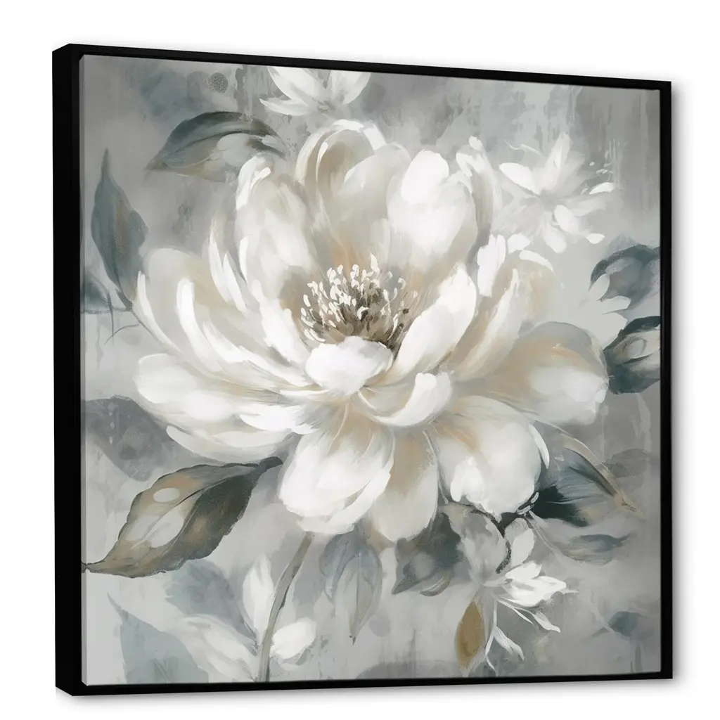 This beautiful White Grey Peony Blooms In Motion I Framed Canvas Art is printed using the highest quality fade-resistant ink on canvas. Every one of our fine art giclee canvas prints is printed on premium quality canvas, using the finest quality inks which will not fade over time. Each giclee print is stretched tightly over a 1.5-inch wood sub frame ensuring the canvas is taught and does not buckle. The canvas print is inserted into a wood floating frame. All of our Framed canvas prints are carefully packaged with corner protection, fragile labeling and sturdy boxes to ensure safe delivery. Every framed canvas print arrives ready to hang on the wall, with the hanging kits included. This framed art print is available in many different color frames. Features: - Style : Modern & Contemporary, - Subject : Floral - Color : White - Premium quality cotton canvas. - Arrives ready to hang on the wall - Easy to Hang
