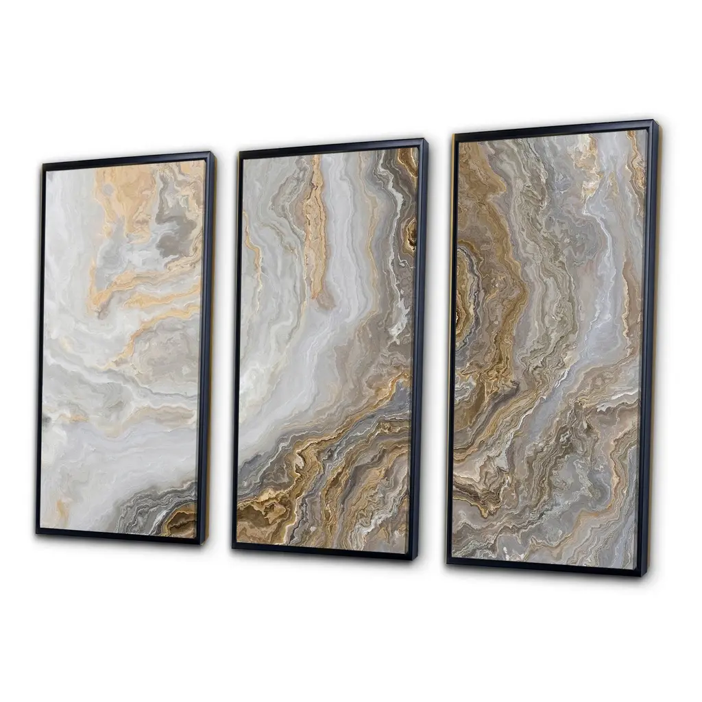 This beautiful White Marble with Curley Grey and Gold Veins 3 Panels Framed Canvas Art is printed using the highest quality fade-resistant ink on canvas. Every one of our fine art giclee canvas prints is printed on premium quality canvas, using the finest quality inks which will not fade over time. Each giclee print is stretched tightly over a 1-inch wood sub frame ensuring the canvas is taught and does not buckle. The canvas print is inserted into a wood floating frame. All of our Framed canvas prints are carefully packaged with corner protection, fragile labeling and sturdy boxes to ensure safe delivery. Every framed canvas print arrives ready to hang on the wall, with the hanging kits included. This framed art print is available in many different color frames. Features: - Style : Glam - Subject : Abstract, - Color : White - Premium quality cotton canvas. - Arrives ready to hang on the wall - Easy to Hang