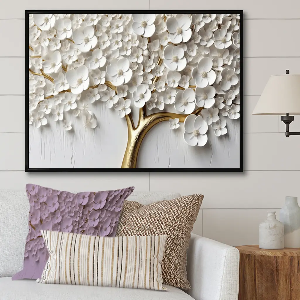 This beautiful White Orchid Tree Garden Of Branches I Framed Canvas Art is printed using the highest quality fade-resistant ink on canvas. Every one of our fine art giclee canvas prints is printed on premium quality canvas, using the finest quality inks which will not fade over time. Each giclee print is stretched tightly over a 1.5-inch wood sub frame ensuring the canvas is taught and does not buckle. The canvas print is inserted into a wood floating frame. All of our Framed canvas prints are carefully packaged with corner protection, fragile labeling and sturdy boxes to ensure safe delivery. Every framed canvas print arrives ready to hang on the wall, with the hanging kits included. This framed art print is available in many different color frames. Features: - Style : Modern & Contemporary, Country - Subject : Landscapes, Floral - Color : White, Gold - Premium quality cotton canvas. - Arrives ready to hang on the wall - Easy to Hang