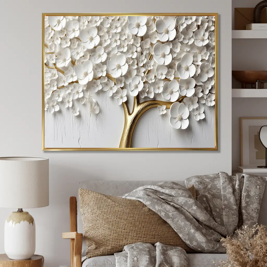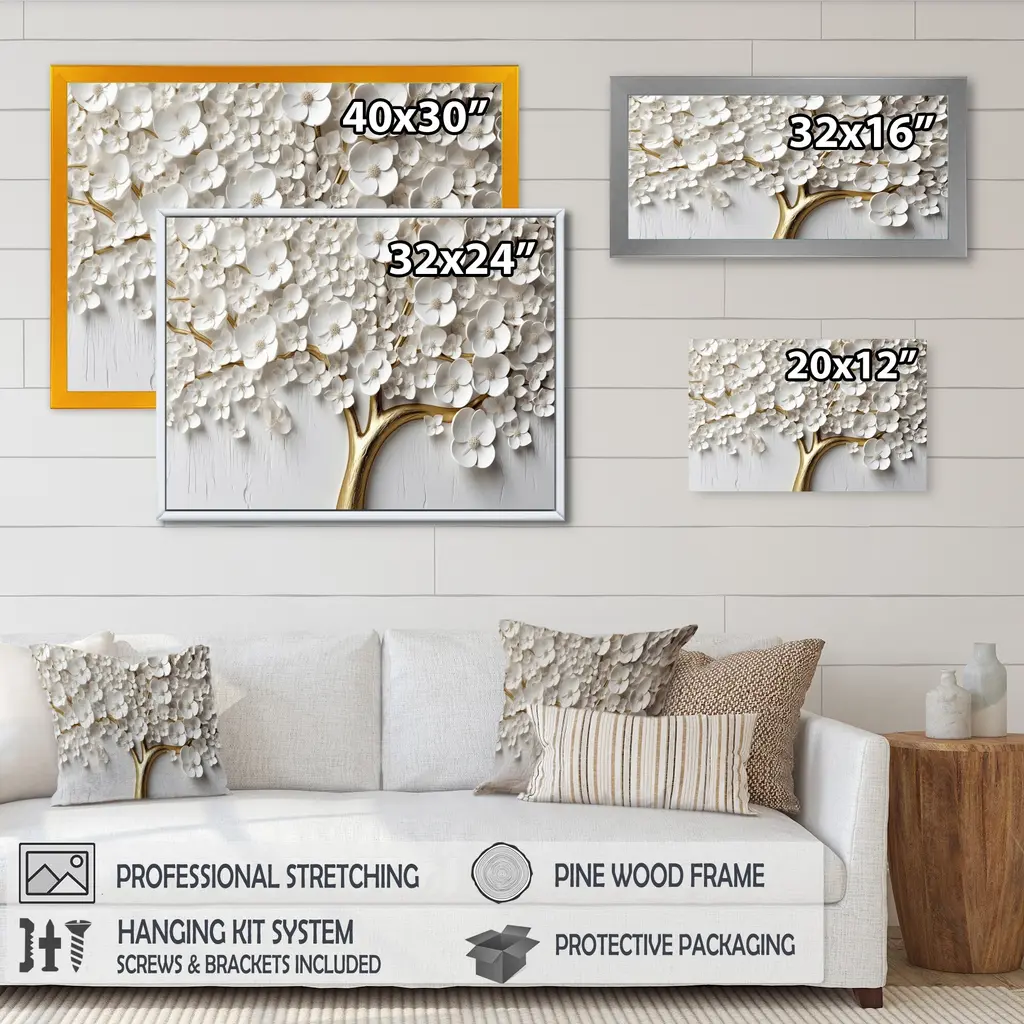 This beautiful White Orchid Tree Garden Of Branches I Framed Canvas Art is printed using the highest quality fade-resistant ink on canvas. Every one of our fine art giclee canvas prints is printed on premium quality canvas, using the finest quality inks which will not fade over time. Each giclee print is stretched tightly over a 1.5-inch wood sub frame ensuring the canvas is taught and does not buckle. The canvas print is inserted into a wood floating frame. All of our Framed canvas prints are carefully packaged with corner protection, fragile labeling and sturdy boxes to ensure safe delivery. Every framed canvas print arrives ready to hang on the wall, with the hanging kits included. This framed art print is available in many different color frames. Features: - Style : Modern & Contemporary, Country - Subject : Landscapes, Floral - Color : White, Gold - Premium quality cotton canvas. - Arrives ready to hang on the wall - Easy to Hang