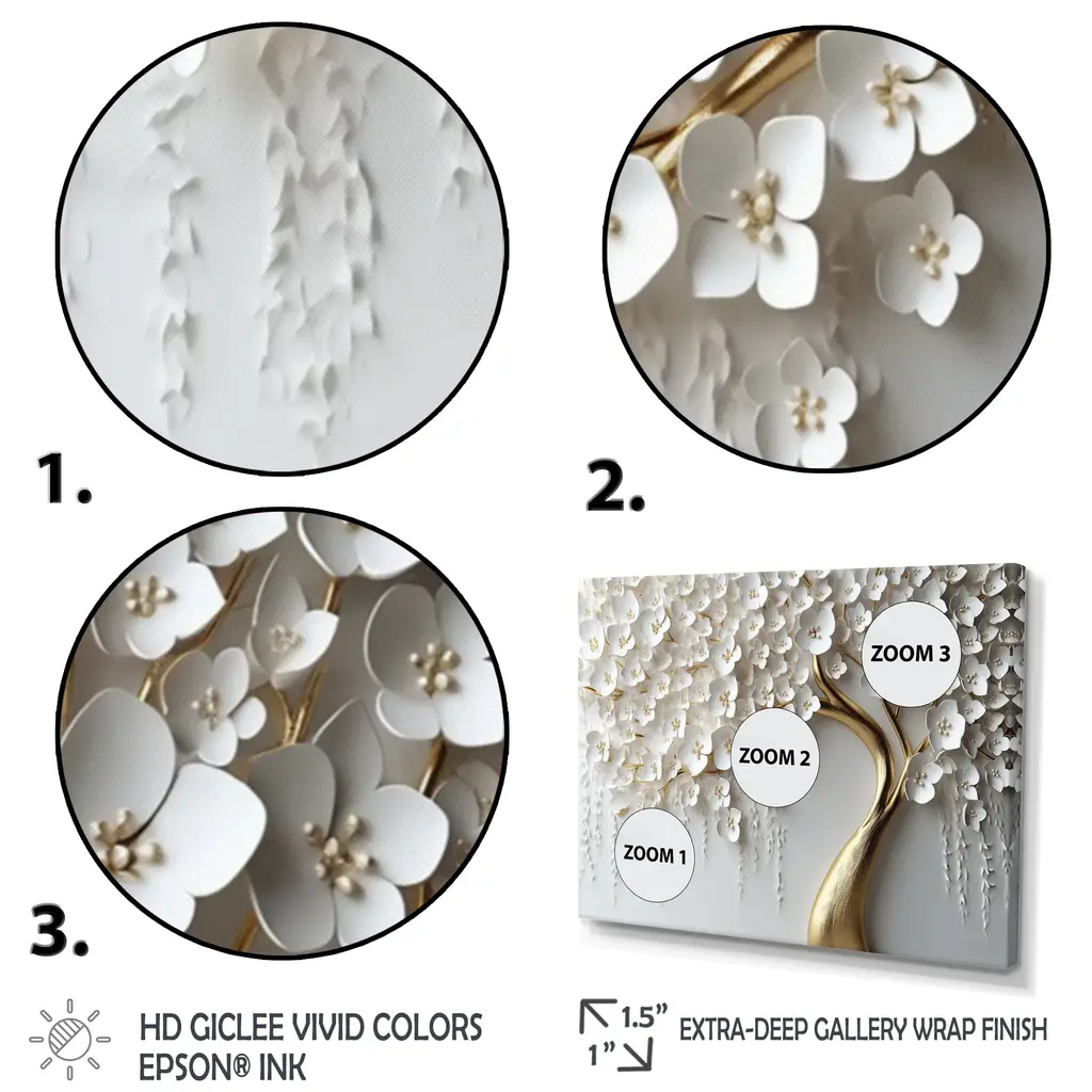 Designart "White Orchid Tree Garden Of Branches Iv" Tree Floral Canvas Art Print - 44 In. Wide X 34 In. High