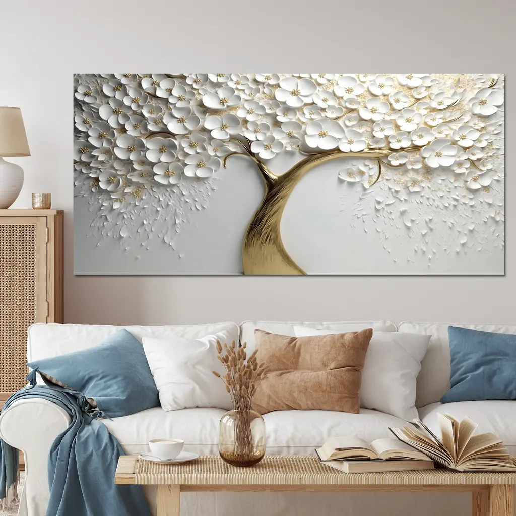 This beautiful White Orchid Tree Garden Of Branches V Canvas Art is printed using the highest quality fade resistant ink on canvas. Every one of our fine art giclee canvas prints is printed on premium quality cotton canvas, using the finest quality inks which will not fade over time. Each giclee print is stretched tightly over a 1 inch wood sub frame for small size prints or a 1.5 inch wood sub frame for large size prints (40x30 60x28 ...) ensuring the canvas is taught and does not buckle. This canvas art print is gallery-wrapped (the design continues on the sides) , giving it a real art gallery feel. All of our canvas prints are carefully packaged with plastic protection, fragile labeling and sturdy boxes to ensure a safe delivery. Every canvas print arrives ready to hang on the wall, with the hanging kits included. - Style : Modern & Contemporary, Country - Subject : Landscapes, Floral - Color : White, Gold - This canvas giclee print is gallery-wrapped (the design continues on the sides) , giving it a real art gallery feel. - Premium quality cotton canvas. - Arrives ready to hang on the wall - Easy to Hang