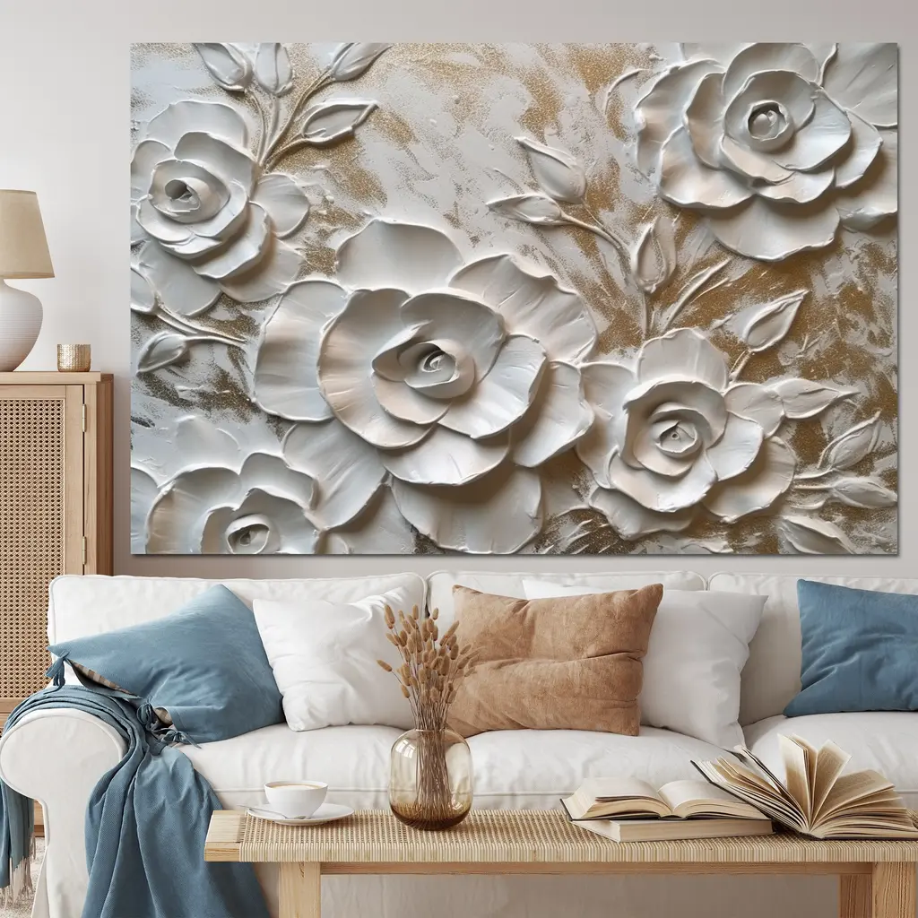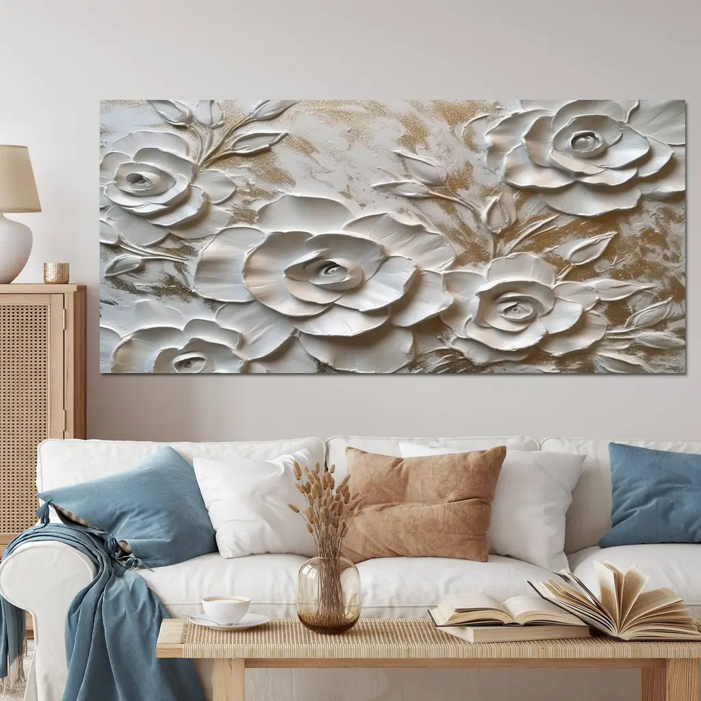 This beautiful White Roses In Bloom Canvas Art is printed using the highest quality fade resistant ink on canvas. Every one of our fine art giclee canvas prints is printed on premium quality cotton canvas, using the finest quality inks which will not fade over time. Each giclee print is stretched tightly over a 1 inch wood sub frame for small size prints or a 1.5 inch wood sub frame for large size prints (40x30 60x28 ...) ensuring the canvas is taught and does not buckle. This canvas art print is gallery-wrapped (the design continues on the sides) , giving it a real art gallery feel. All of our canvas prints are carefully packaged with plastic protection, fragile labeling and sturdy boxes to ensure a safe delivery. Every canvas print arrives ready to hang on the wall, with the hanging kits included. - Style : Traditional - Subject : Floral - Color : White - This canvas giclee print is gallery-wrapped (the design continues on the sides) , giving it a real art gallery feel. - Premium quality cotton canvas. - Arrives ready to hang on the wall - Easy to Hang