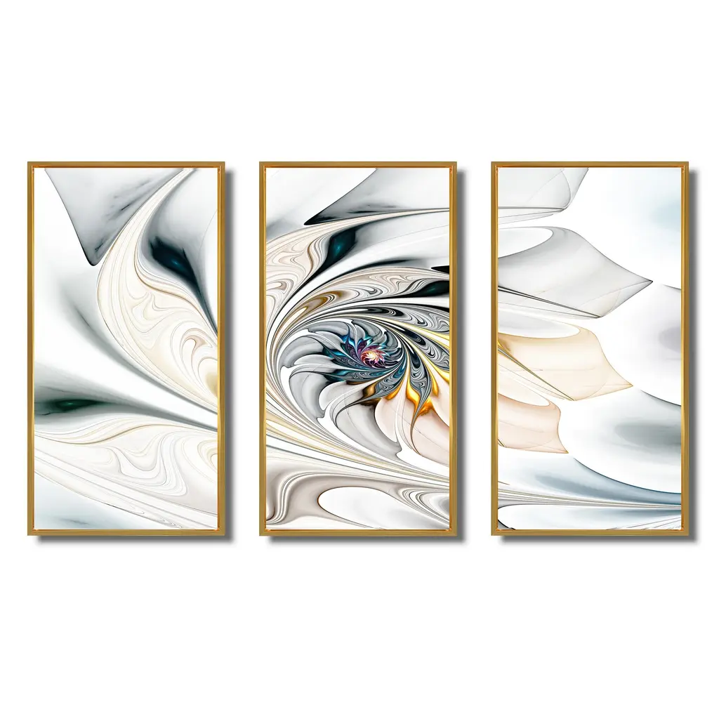 Designart "White Stained Glass Floral Art" Floral Framed Artwork Set Of 3 - 4 Colors Of Frames - 48 In. Wide X 32 In. High - 3 Panels - Gold