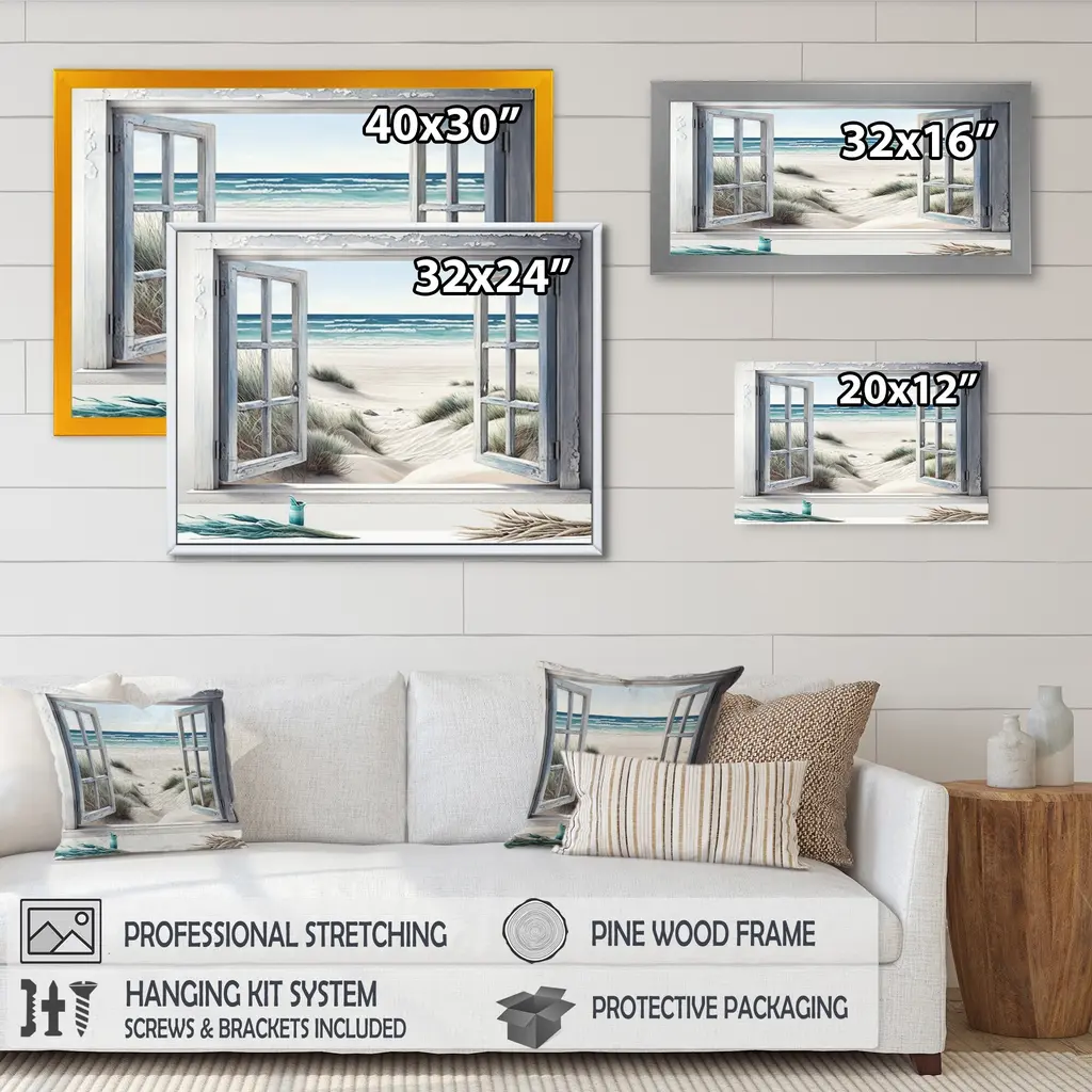 Designart 'Window To The Beach Iii' Beach Canvas Wall Art - 32 In. Wide X 16 In. High
