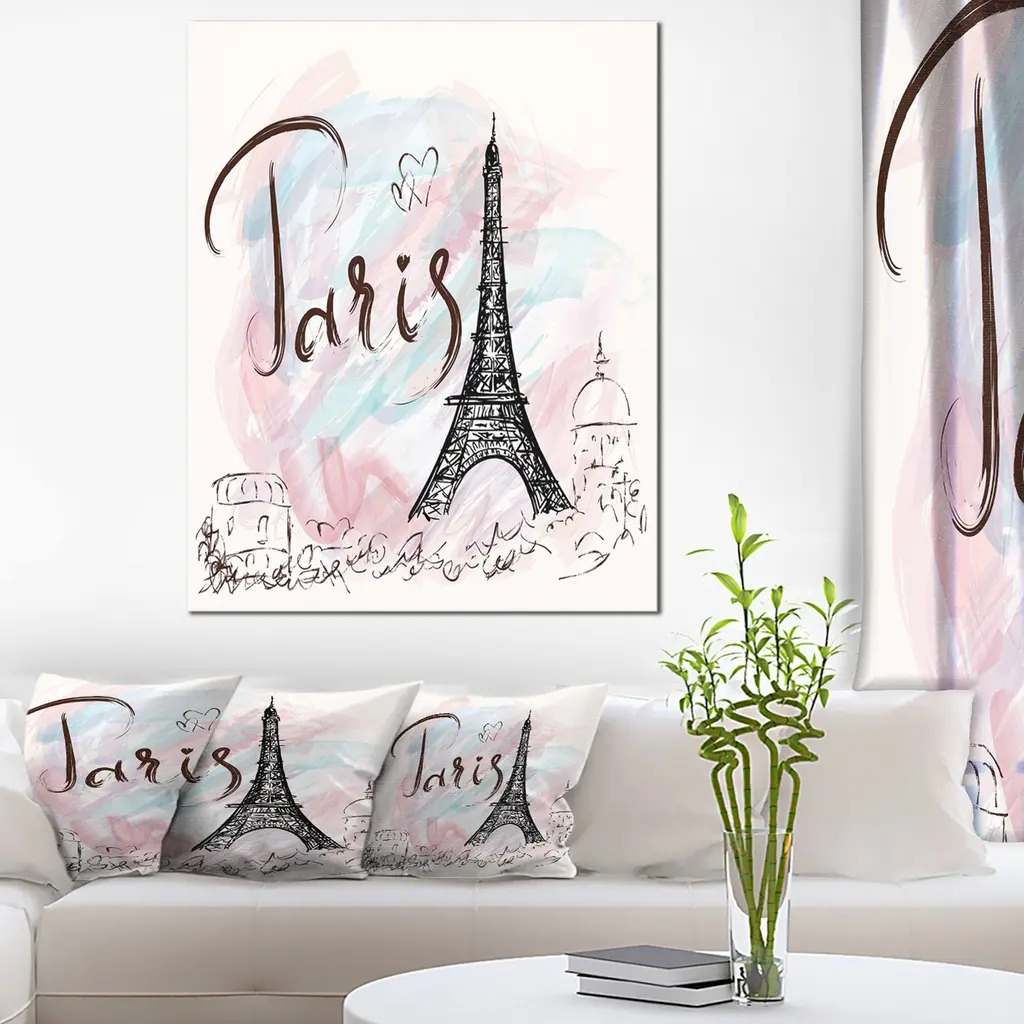 Designart "With Paris Eiffel Tower" Abstract Cityscape Canvas Print - 12 In. Wide X 20 In. High