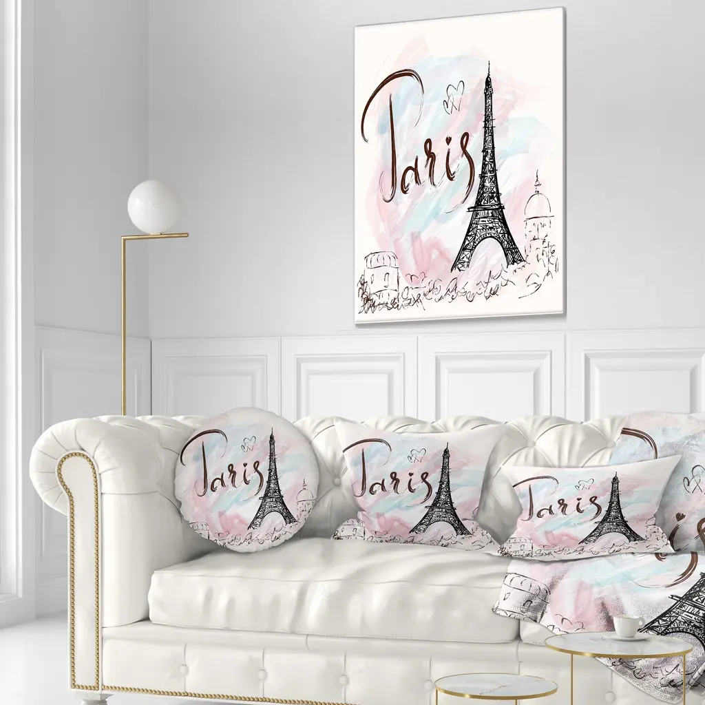 Designart "With Paris Eiffel Tower" Abstract Cityscape Canvas Print - 24 In. Wide X 32 In. High