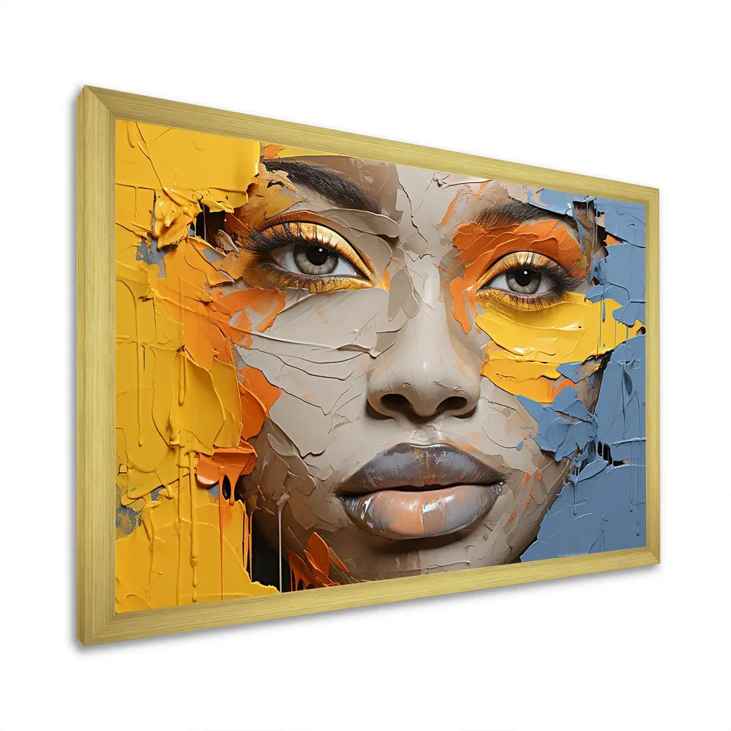This beautiful "Yellow Blue Paint Collage Portrait" Framed wall Art is printed using the highest quality fade resistant ink on canvas. Every one of our People Framed Wall art printed on premium quality cotton canvas, Each Global Framed Canvas print is stretched tightly over a 1-inch wood sub frame and inserted into a 1.5 Frame. All of our Framed Canvas Prints are carefully packaged with corner protection, fragile labeling and sturdy boxes to ensure safe delivery. Every framed canvas print arrives ready to hang on the wall, with the hanging kits included. This framed art print is available in many different color frames. Features: - Style : Global; Colonial Framed Canvas - Subject : African American Art Wall Art - Color : Yellow; Blue - Premium quality cotton canvas. - Arrives ready to hang on the wall. - Frame Tickness : 1 inch - Frame Width : 1.5 inch Wide - Easy to Hang