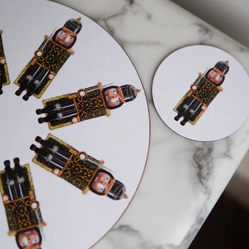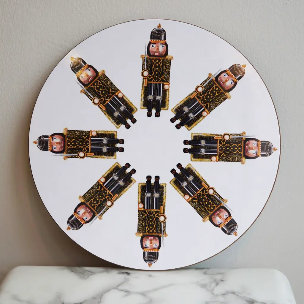 Serving as a wonderful addition to seasonal table settings and a great base for special festive chargers and silverware. Each placemat features a Designer Nutcracker illustration, dressed in colours, patterns and accessories inspired by an iconic fashion house, gathered in an art-deco influenced pattern. Inspired by traditional German nutcracker dolls, the fine detailing and bright colours depicted in Jessica’s original paintings, elevates the humble tableware to jolly decorations, which is sure to bring a touch of traditional Christmas charm. This dining set is also a great gift for those who enjoy adding a unique touch to their tables, and for a fashion lover in particular! Sold individually.