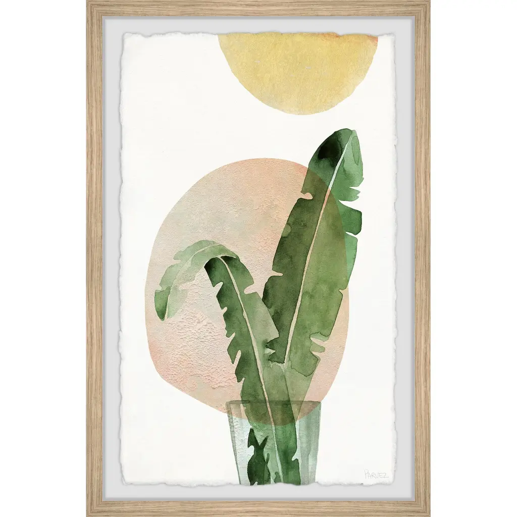 Transform any barren wall with these watercolor painting print that feature a stunning plant and geometric shapes. Proudly printed in the USA, this piece is printed on high quality archive paper and professionally hand-framed. With wall-mounting hooks included, this artful accent is ready to hang up as soon as it reaches your front door. Canadian artist, Parvez Taj uses water paints, photographs, software, and UV cured inks to create his wall art. His artwork connects the out-of-reach luxury art world with the modern, fashion-conscious home decorator by delivering high quality artwork that is both affordable and hip. • Top quality Giclee print on high resolution Archive Paper • Hand cut deckled edges • High quality durable non-warping frame • Finished under shatter resistant plexiglass • Arrives ready to hang • Includes a certificate of authenticity • Printed in the USA • Artist signature on the front