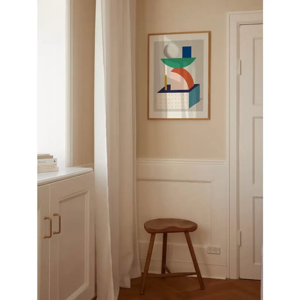 Paper Collective's Dessau 03 poster features a totem-like composition by Juliette Van Rhyn, built from fundamental geometric shapes that blend flat and three-dimensional forms. With its bold colors and dynamic design, the poster adds energy to both home interiors and public spaces. The Dessau posters are printed in Denmark using a 12-color giclée technique on high-quality matte paper. Paper Collective's posters are printed in limited editions and part of each poster sold will be donated to a good cause. The artists include renowned illustrators, graphic designers, and photographers across the world, whose work is well-suited for contemporary decor.