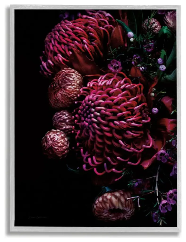Detailed Bouquet Tropical Flowers Red Pink Photograph,1pc, Each 16 X 20