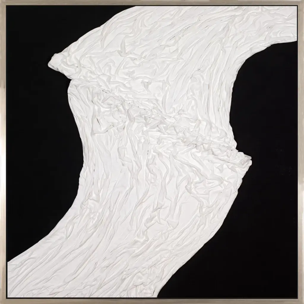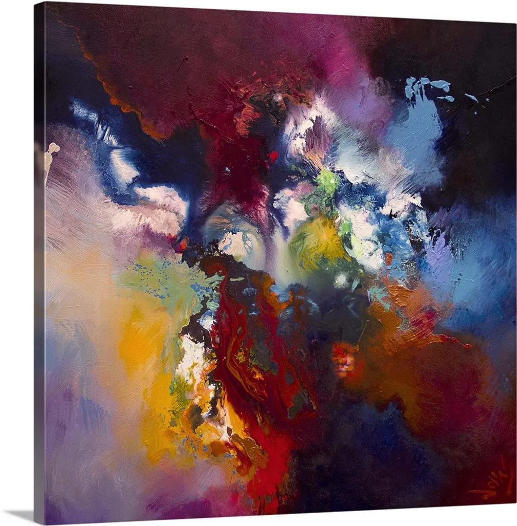 A flaming eye - inspired by the Devil's eye - emerges neat yet mysterious from the secure brushstrokes of this superb painting. Achieved by masterfully combining acrylic colors, ink, and tissue paper glued to the canvas, it actualizes an astonishing synthesis between fire and darkness that conveys the tense, choleric undertones.