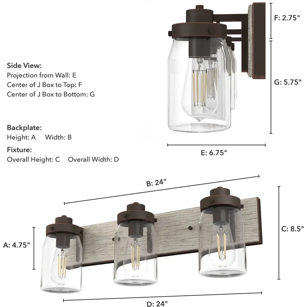 Devon Park 3 Light 24 Inch Onyx Bengal And Barnwood Vanity Light Wall Light
