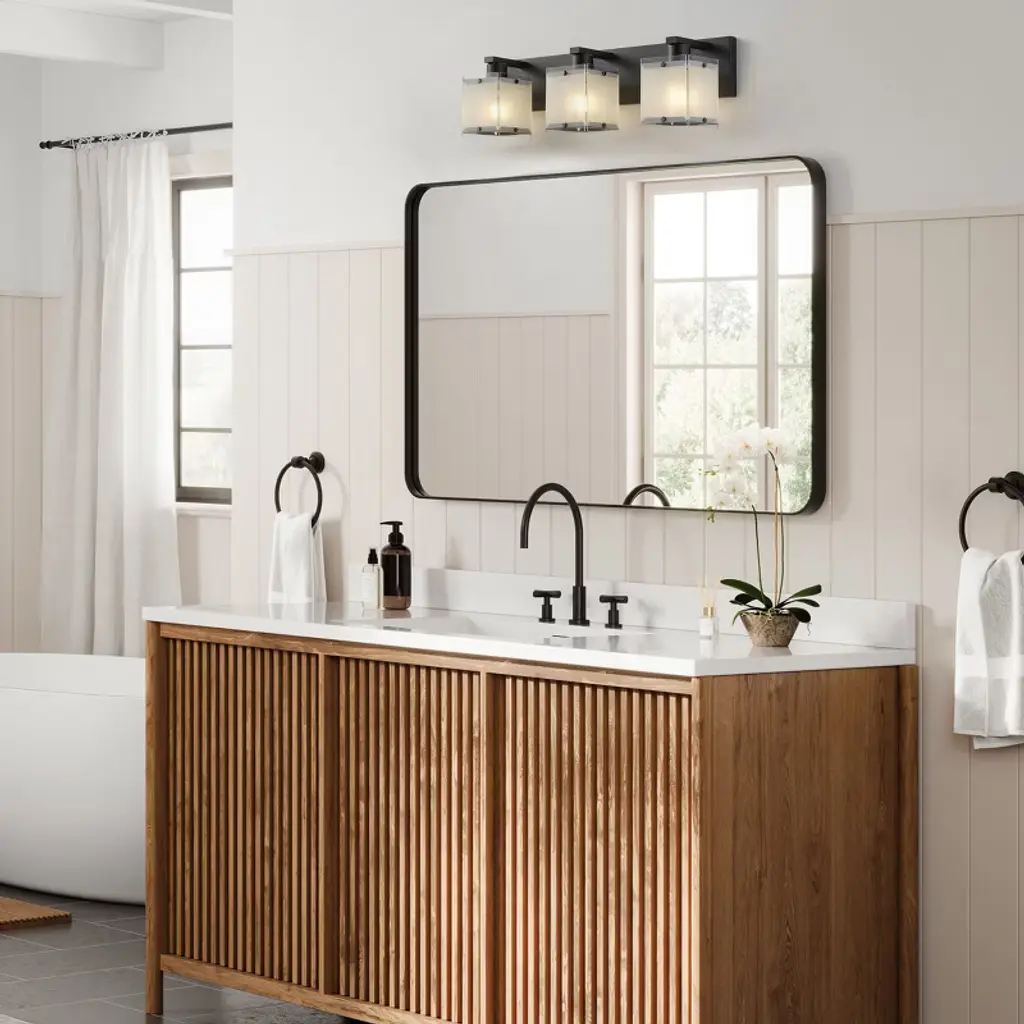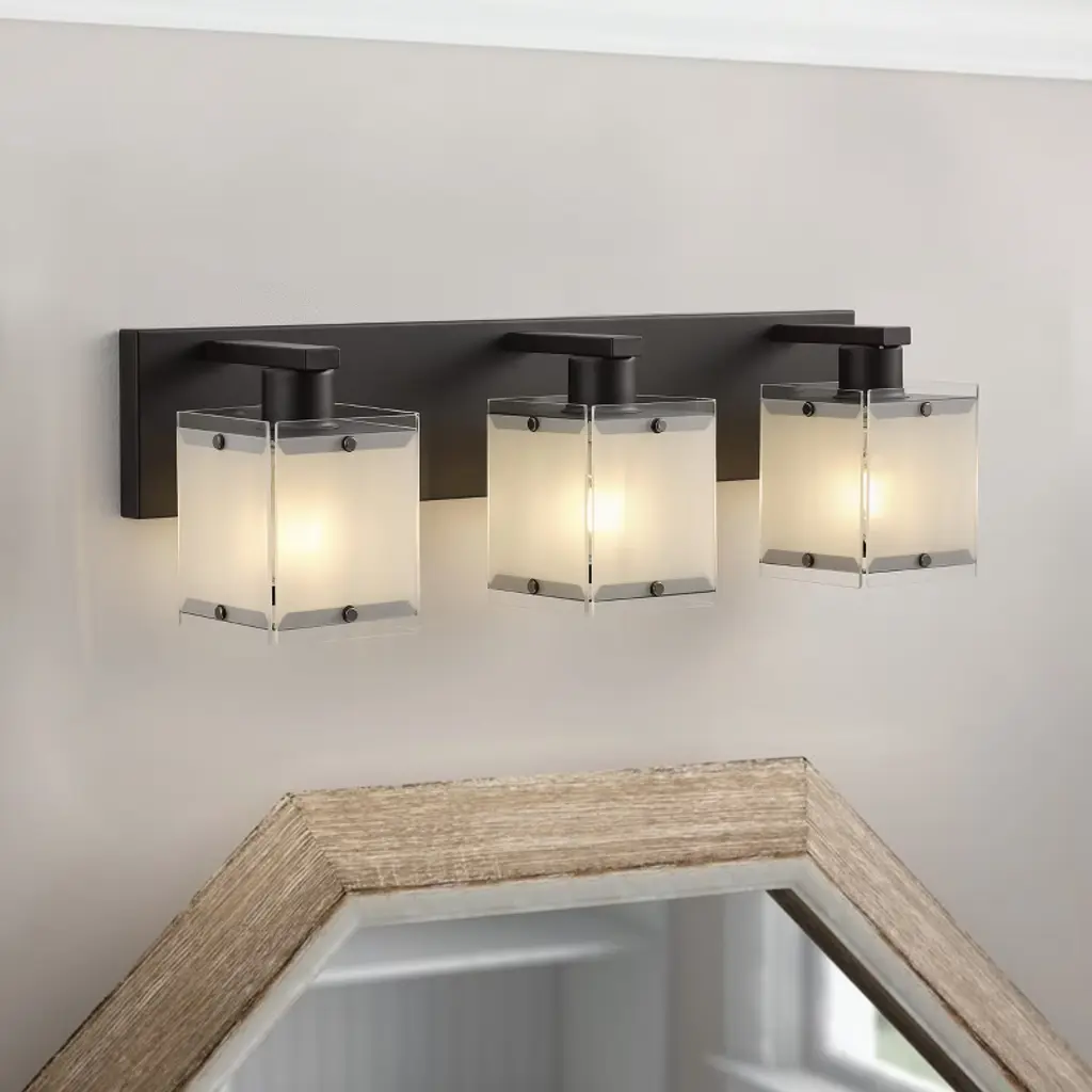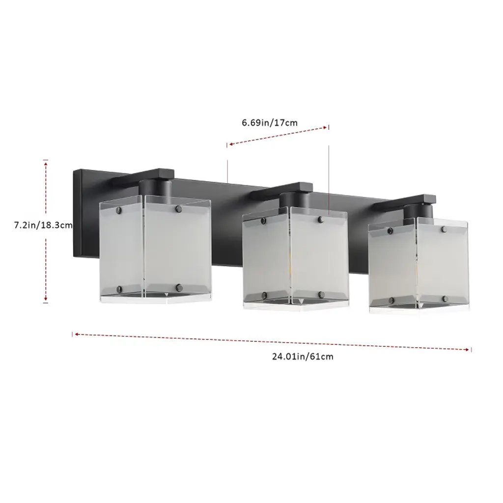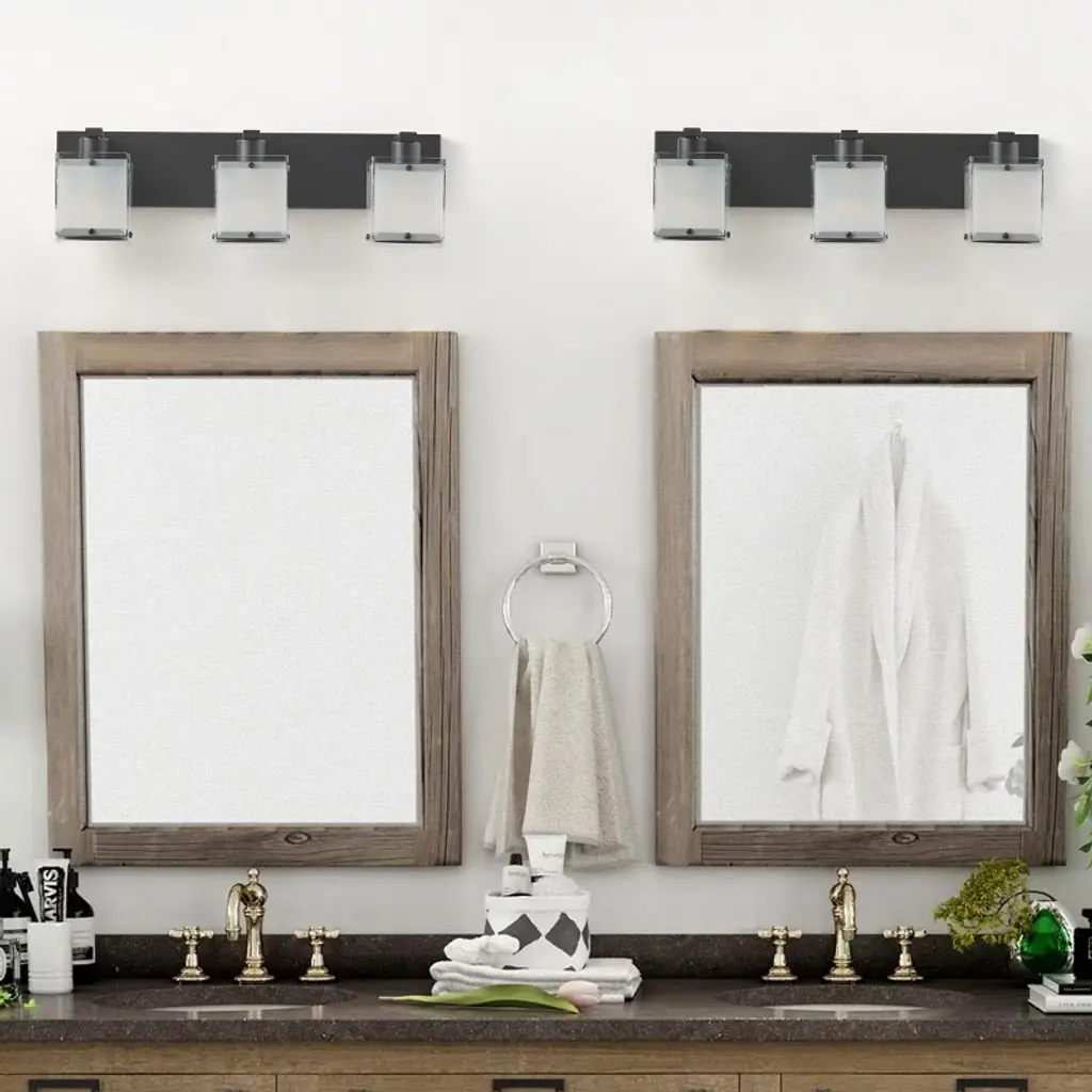 The Dewdrop 3-Light Bathroom Vanity Light combines modern style with durable construction. Made of matte black iron and frosted clear tempered glass, it delivers a clean, elegant look for any bathroom. Designed with three E26 sockets (60W max, 120V), it works with LED, CFL, or incandescent bulbs for versatile lighting. The fixture is ETL certified and built with safe 18AWG wiring for reliable performance. Its up or down mounting option makes it perfect for bathrooms, powder rooms, or dressing areas, adding both style and functionality.