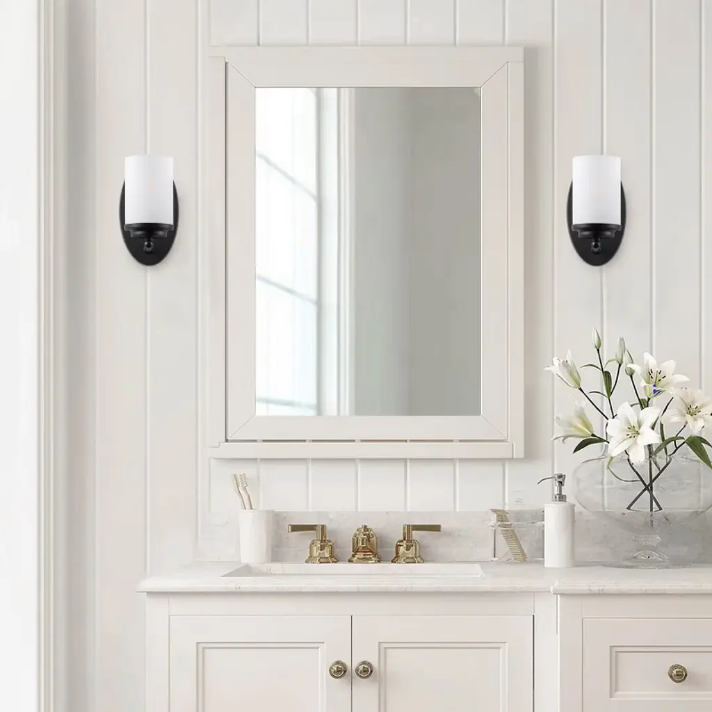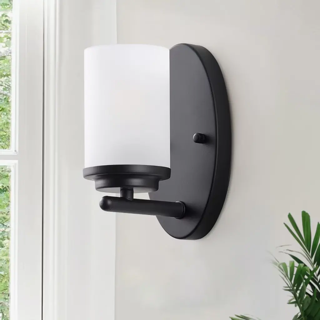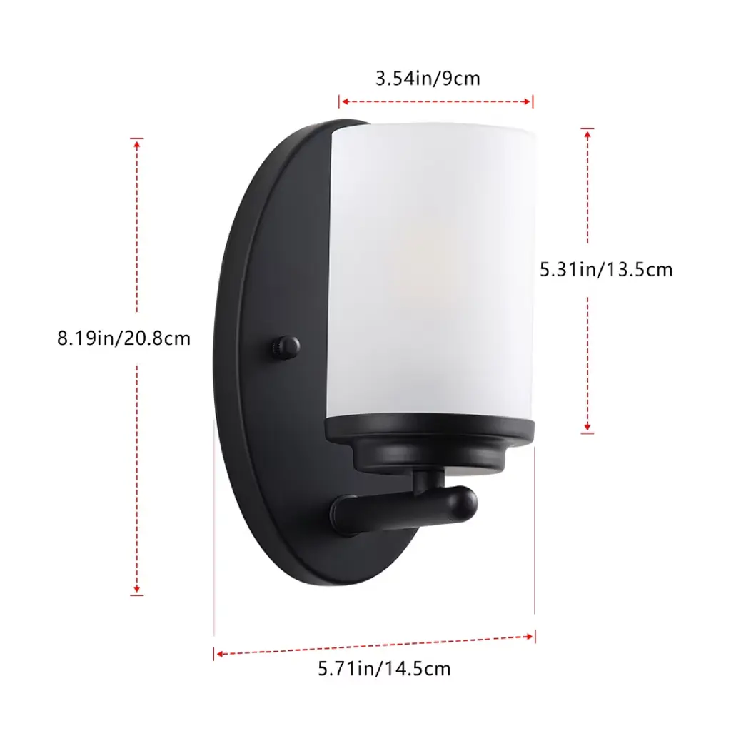 The Dewdrop 1-Light Wall Sconce blends modern elegance with reliable performance. Made of sturdy iron with a deep black painted finish and paired with a frosted glass shade, it brings warm, soft light to any bathroom, hallway, or living space. The fixture can be mounted facing up or down for versatile styling. Designed with a standard E26 socket (120V, max 40W), it works with most bulbs. With ETL certification and 18AWG Teflon wiring, this wall light ensures safety, durability, and long-lasting beauty for your home.