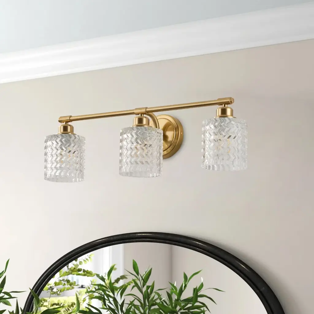 Dewdrop Modern 3-light Textured Cylinder Glass Shade Vanity Light For Bathroom