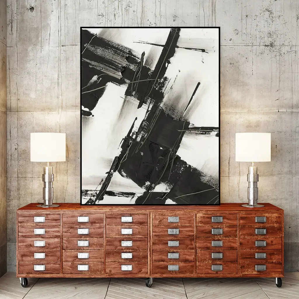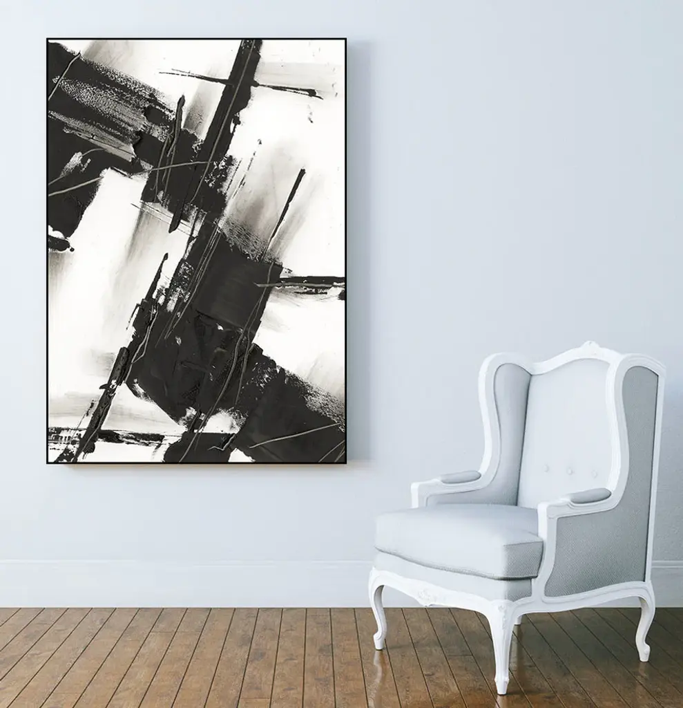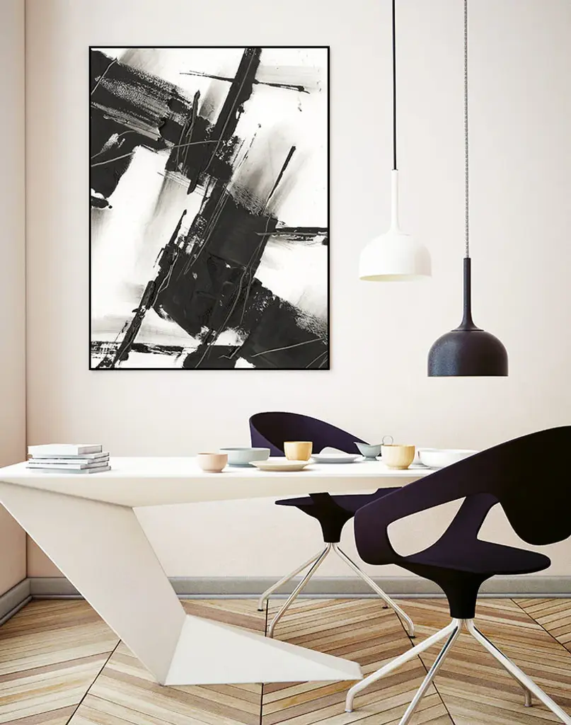Your ready-to-hang artwork is printed on canvas then stretched and mounted to a 2 inch-thick, hand-stained black wood frame. Arrives at your door complete with an easy-to-use self-leveling hanging kit.