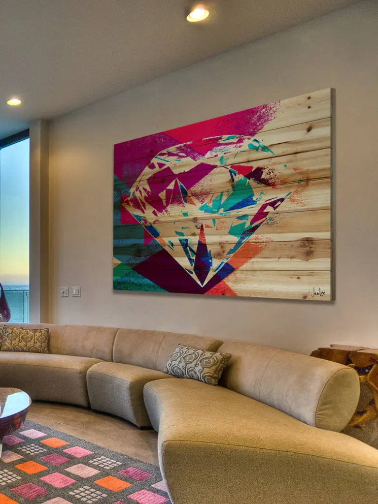 "Diamond In The Rough" Print On Wood By Jen Lee, 45x30 Cm