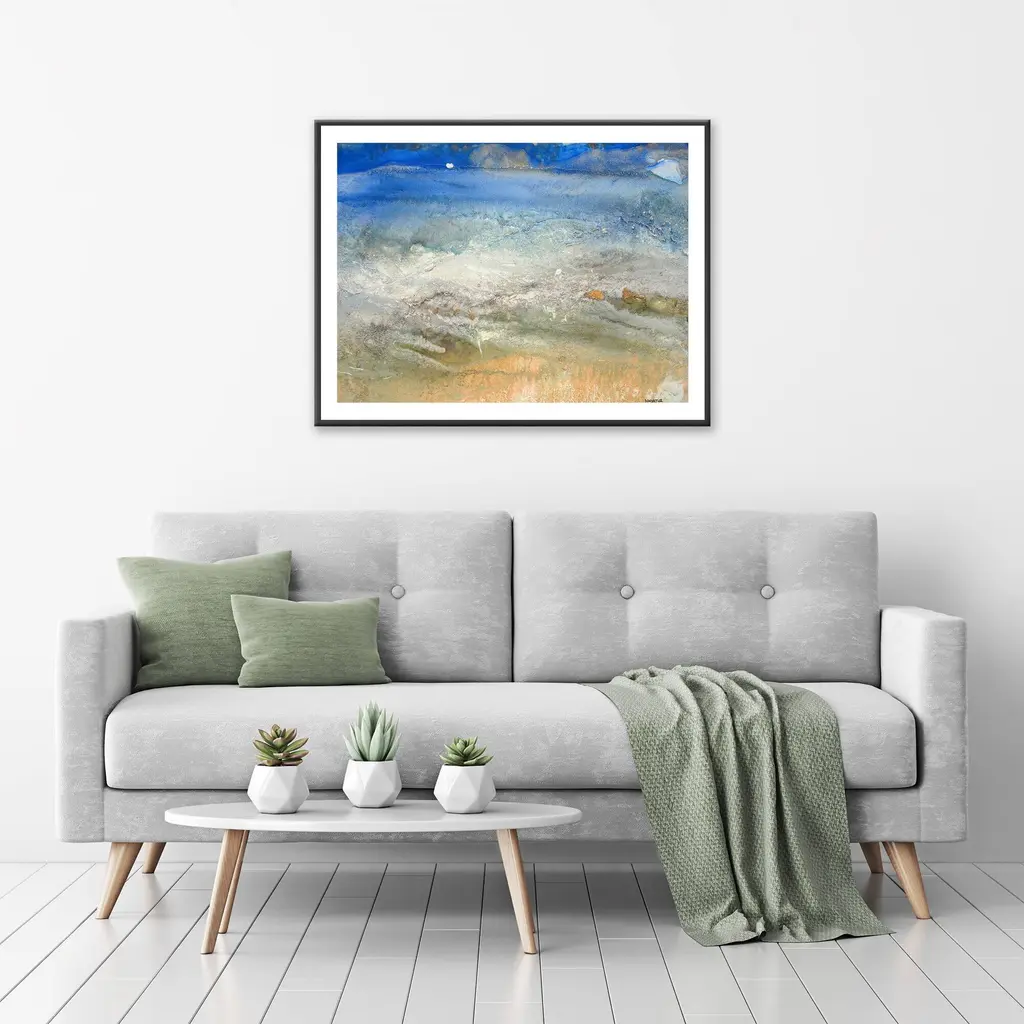 Escape in the vast sea of blue and sandy brushstrokes that resemble an ocean shoreline in this horizontal abstract seascape. The decorative Norman Wyatt artwork, 'Diamond Shores' will complement your space with its coastal and contemporary aesthetic. This piece is handcrafted in Chattanooga, Tennessee by Ready2HangArt using a locally sourced artist print, with a frame and a rear hanger for simple installation. Offering a wide range of transitional subjects and unique textures, Norman Wyatt's collections will add interest to any modern or contemporary decor.