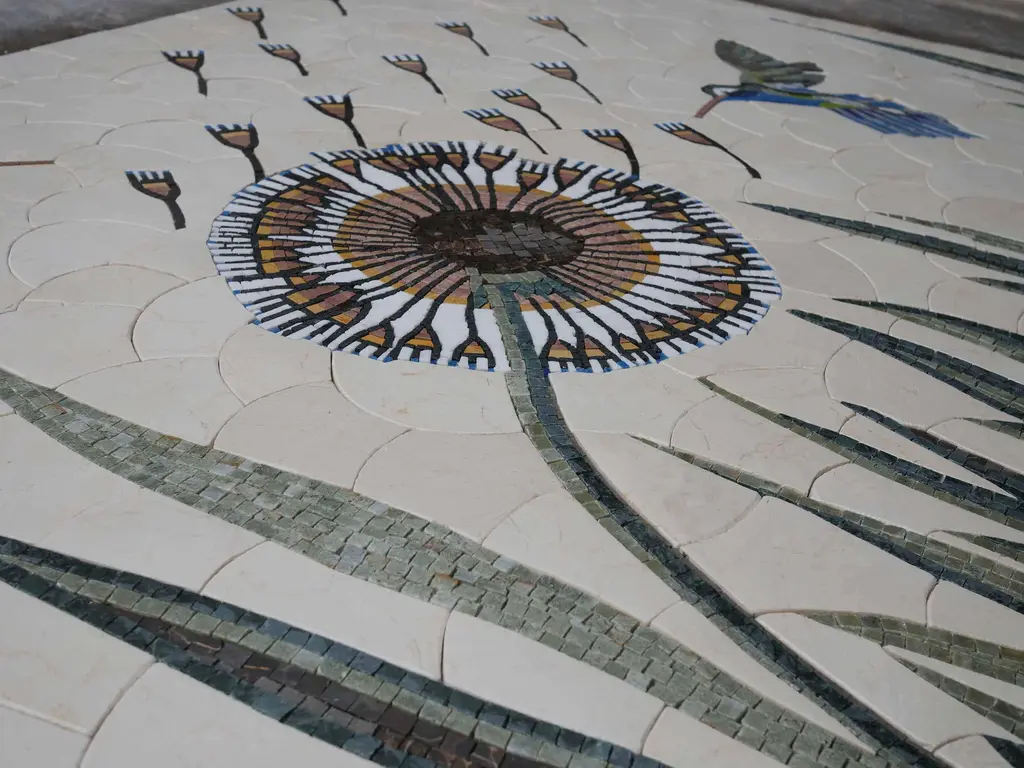 Transform your living space with the exquisite "Diente de Leon Petals - Mosaic Stone Art." This stunning piece of art captures the essence of nature's beauty, featuring a breathtaking representation of dandelions alongside charming blue birds, all set against a soft beige canvas. The vibrant colors and intricate detailing of the dandelion petals create a captivating focal point that draws the eye from every angle.Crafted with large stone pieces, this mosaic art not only adds elegance to your home but also brings a touch of the outdoors inside. Its durable design makes it perfect for both indoor and outdoor settings, ensuring that you can enjoy its beauty in any part of your home. Whether displayed in your living room, garden, or patio, the "Diente de Leon Petals - Mosaic Stone Art" is sure to brighten any space and enhance your decor.Let the enchanting colors and delicate shapes of the mosaic transport you to a serene garden filled with life. The combination of the soft beige background with the vibrant petals and blue birds creates a harmonious balance that radiates warmth and tranquility. This piece is not just art; it's a celebration of nature's wonders designed to inspire and uplift your spirit.Elevate your home decor with the "Diente de Leon Petals - Mosaic Stone Art." Perfect as a gift for a loved one or as a statement piece for your own collection, this mosaic art will leave a lasting impression and create a welcoming atmosphere. Embrace the beauty of nature and let this stunning artwork become a cherished part of your home.