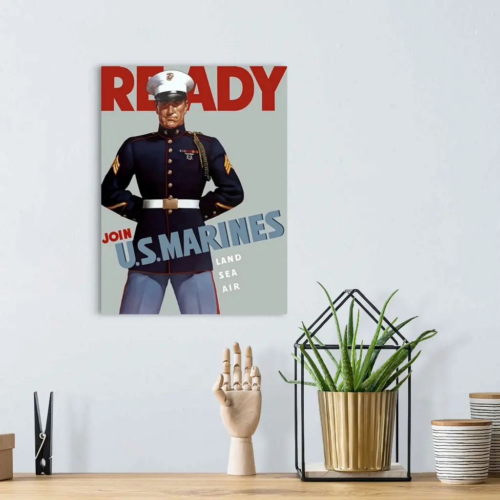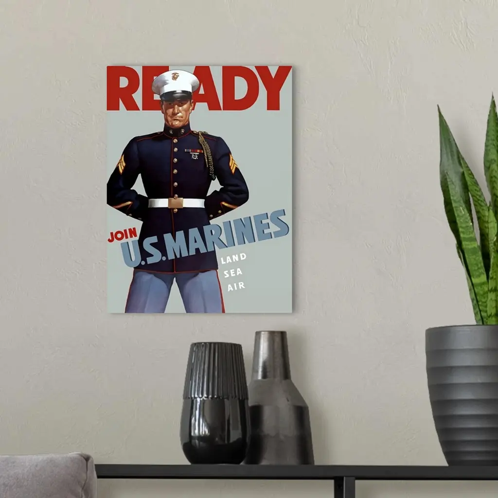 Digitally Restored Vector War Propaganda Poster. Ready, Join U.s. Marines, Land Sea Air