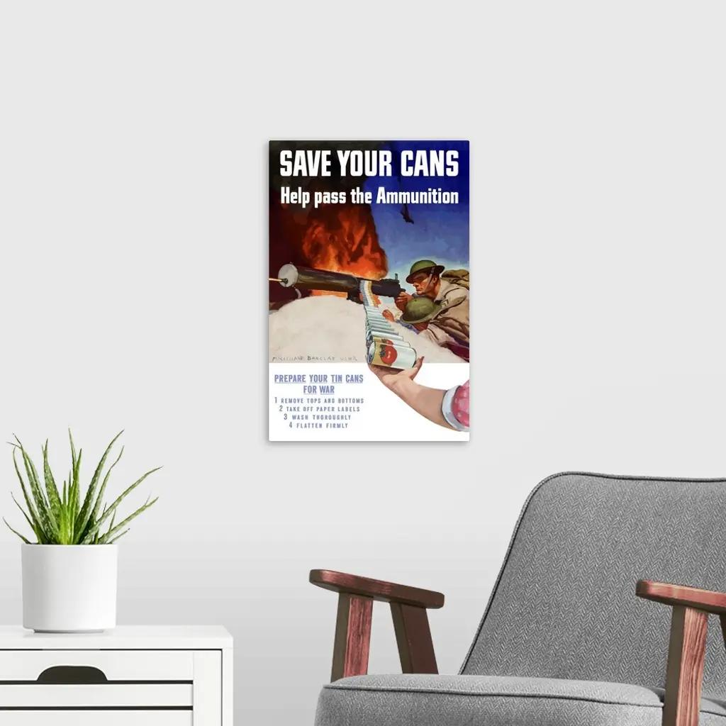 Digitally Restored Vector War Propaganda Poster. Save Your Cans
