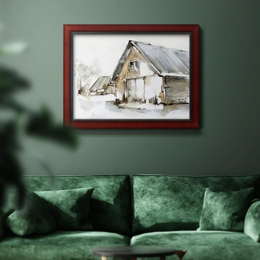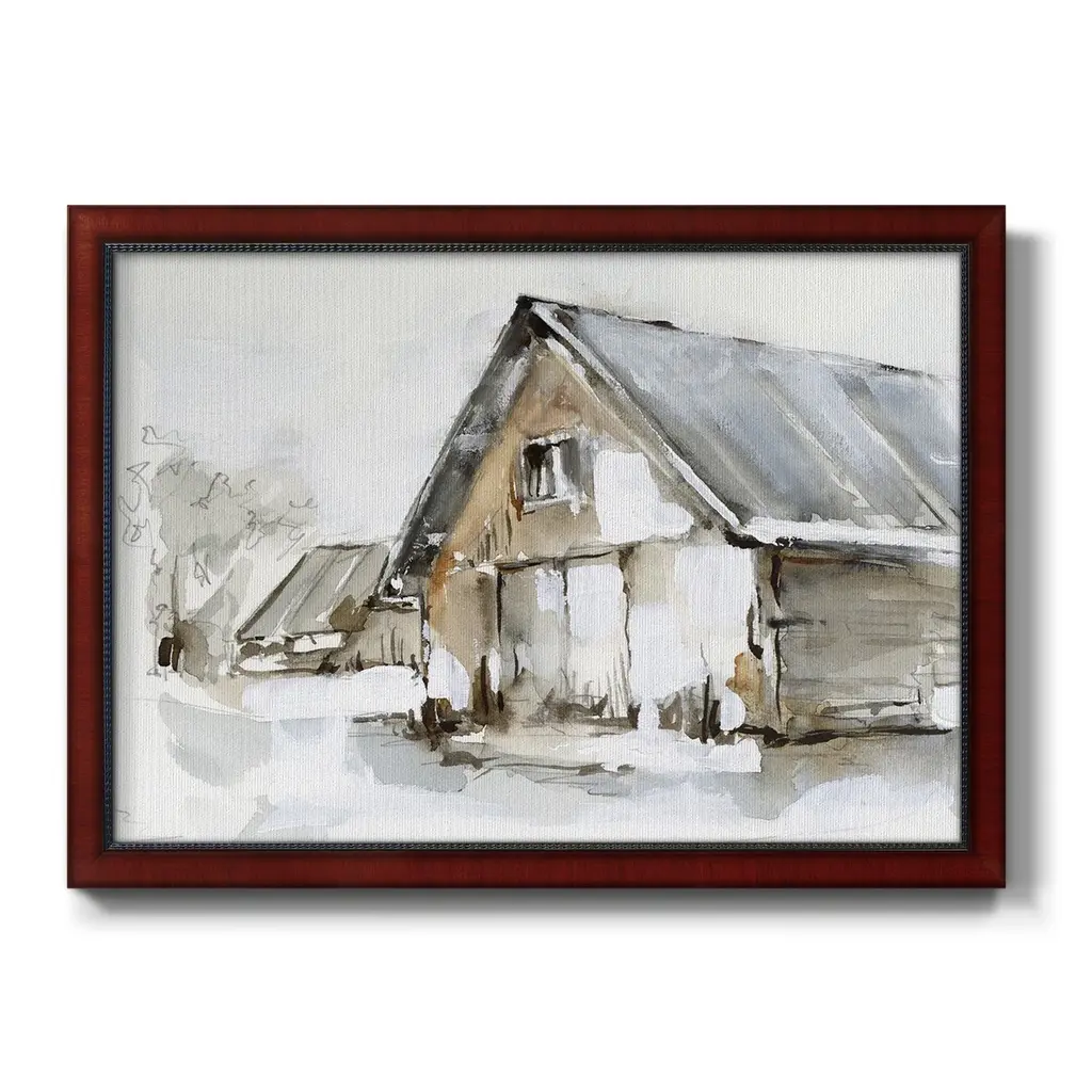 Dilapidated Barn I Premium Framed Canvas- Ready to Hang A Premium Framed Canvas created to last. Framed in distressed wood and available in an array of sizes and colors Featuring a beveled a solid wood stretcher bar, each piece comes ready to hand 3 SIZES AVAILABLE 16''X20'' - Overall Size 18'X27'' - Overall Size 24''x36'' - Overall Size Each piece is made to order. Each piece comes with hanging hardware. Made in the USA Ready to Hang Giclee Paper Print Acrylic Glass Beveled Matt Board