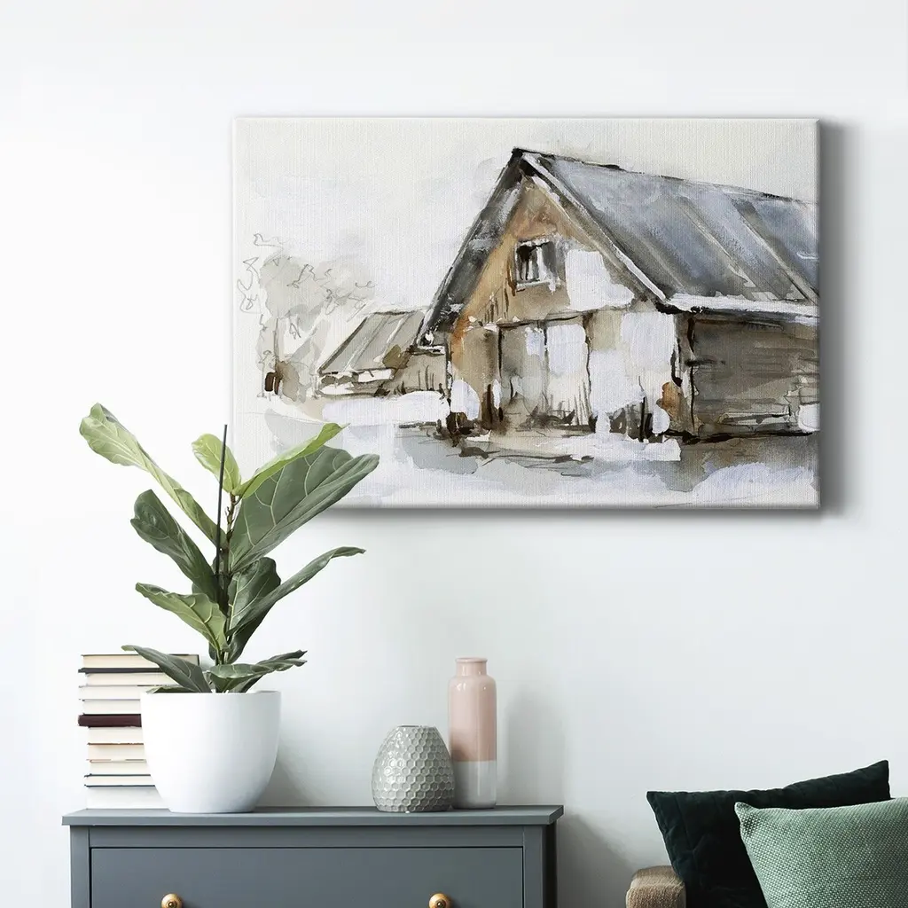 Dilapidated Barn I Premium Gallery Wrapped Canvas - Ready to Hang A premium hand stretched gallery wrapped canvas print created to last. Featuring a beveled a solid wood stretcher bar, each piece comes ready to hand 6 SIZES AVAILABLE 8''X12'' - Overall Size 12''X18'' - Overall Size 18''X27'' - Overall Size 24''x36'' - Overall Size 32''x48'' - Overall Size 40''x60'' - Overall Size Each piece is made to order. Built to Last Each piece comes ready to hang Solid wood stretcher Fade and Water resistant Made domestically