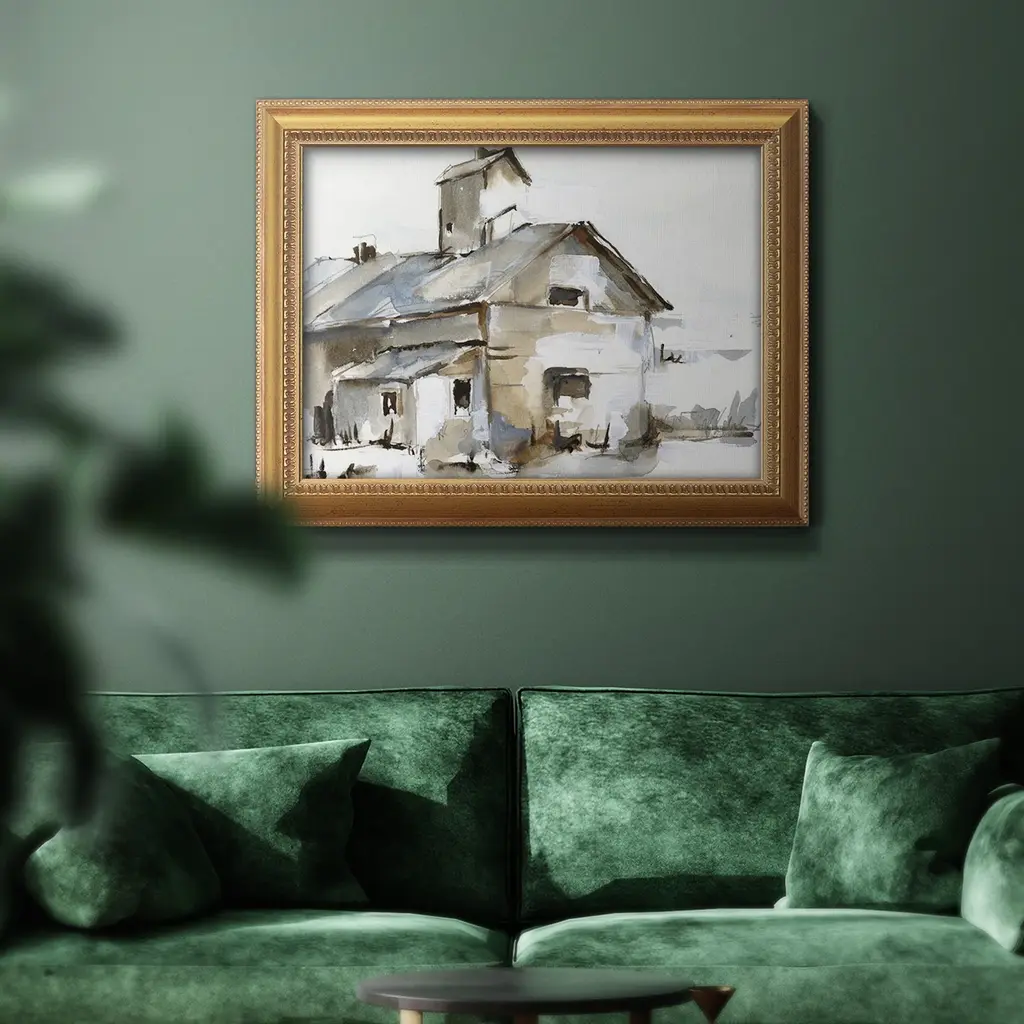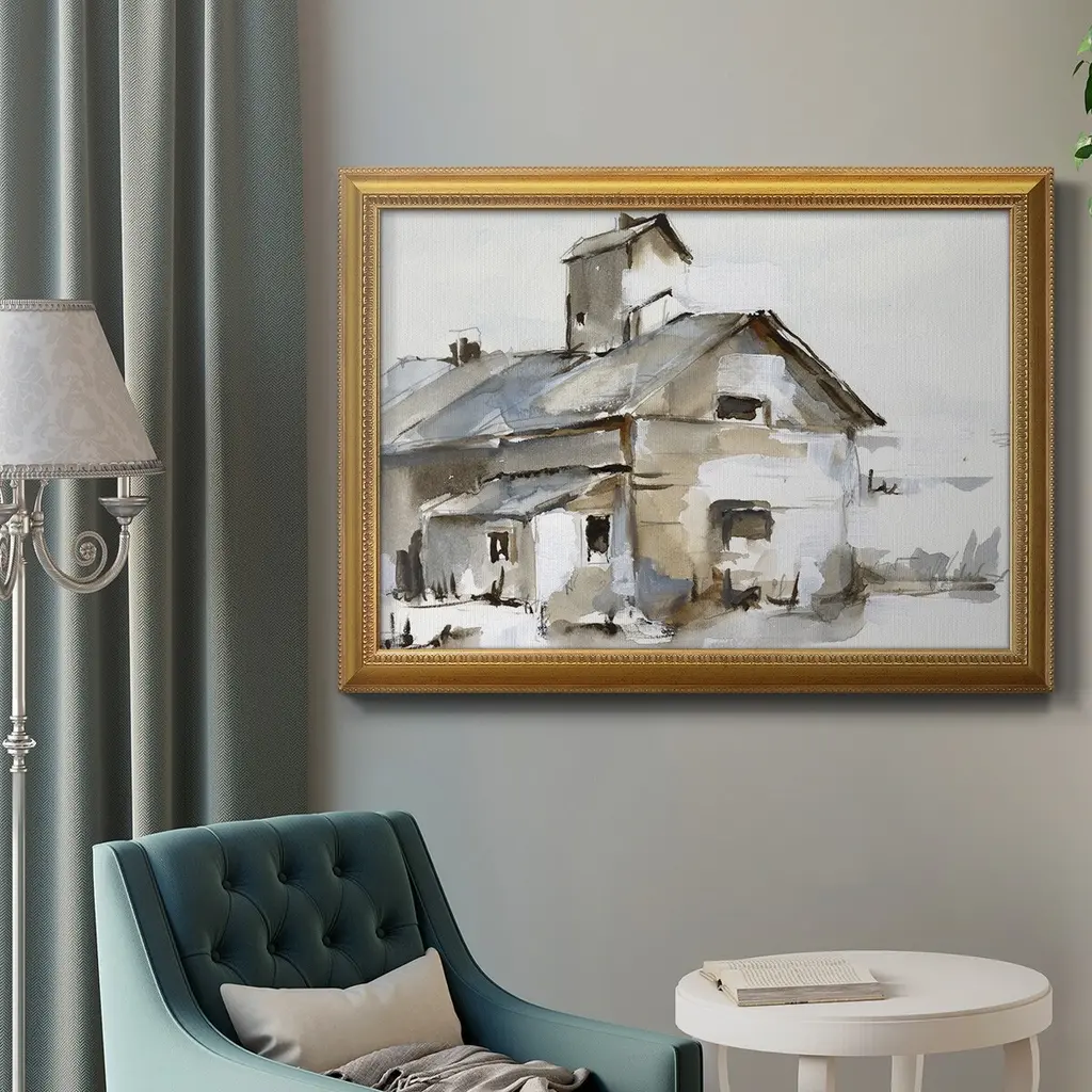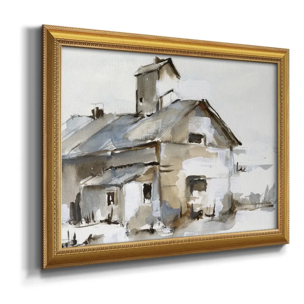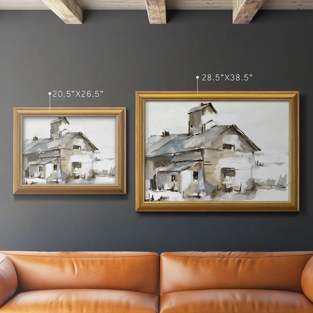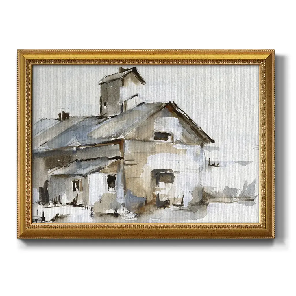 Dilapidated Barn II Premium Framed Canvas- Ready to Hang A Premium Framed Canvas created to last. Framed in distressed wood and available in an array of sizes and colors Featuring a beveled a solid wood stretcher bar, each piece comes ready to hand 3 SIZES AVAILABLE 16''X20'' - Overall Size 18'X27'' - Overall Size 24''x36'' - Overall Size Each piece is made to order. Each piece comes with hanging hardware. Made in the USA Ready to Hang Giclee Paper Print Acrylic Glass Beveled Matt Board