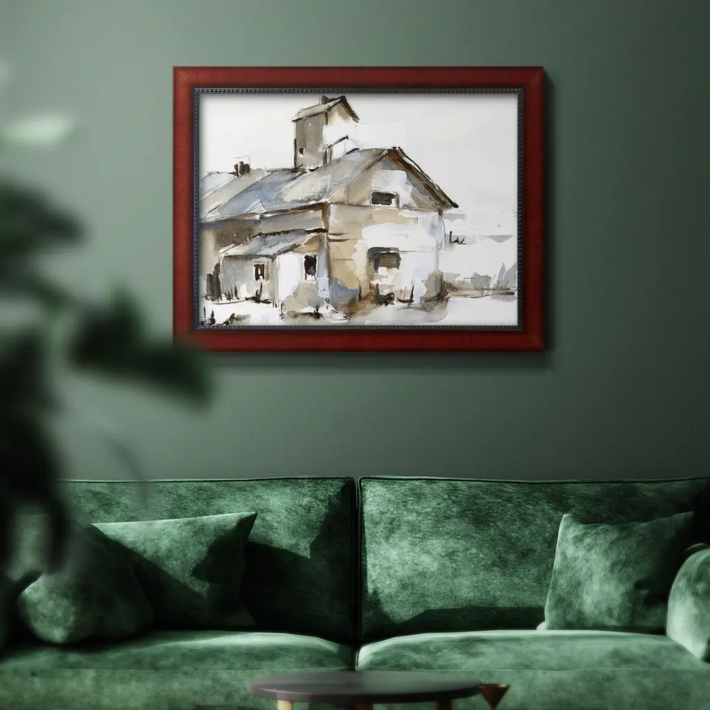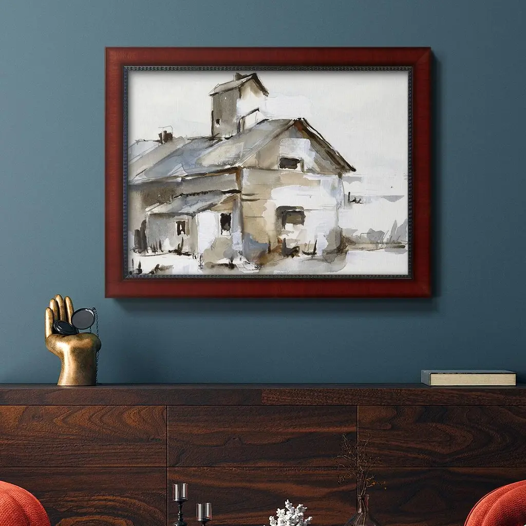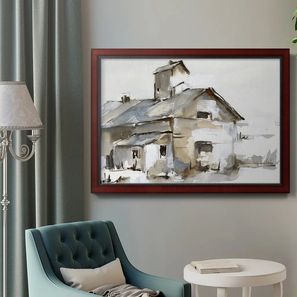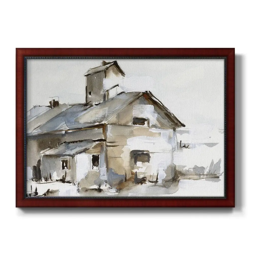 Dilapidated Barn II Premium Framed Canvas- Ready to Hang A Premium Framed Canvas created to last. Framed in distressed wood and available in an array of sizes and colors Featuring a beveled a solid wood stretcher bar, each piece comes ready to hand 3 SIZES AVAILABLE 16''X20'' - Overall Size 18'X27'' - Overall Size 24''x36'' - Overall Size Each piece is made to order. Each piece comes with hanging hardware. Made in the USA Ready to Hang Giclee Paper Print Acrylic Glass Beveled Matt Board