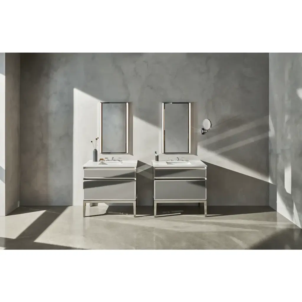 Illuminate the possibilities: Inspired by the golden era of Hollywood glamour, our modular Tenor lighting collection pairs seamlessly with Robern mirrors and medicine cabinets to create a personalized bathroom solution.