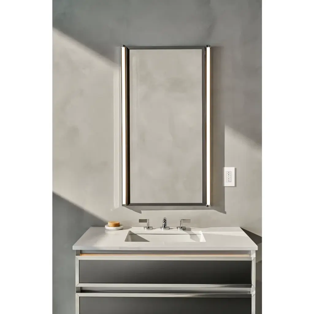 Illuminate the possibilities: Inspired by the golden era of Hollywood glamour, our modular Tenor lighting collection pairs seamlessly with Robern mirrors and medicine cabinets to create a personalized bathroom solution.