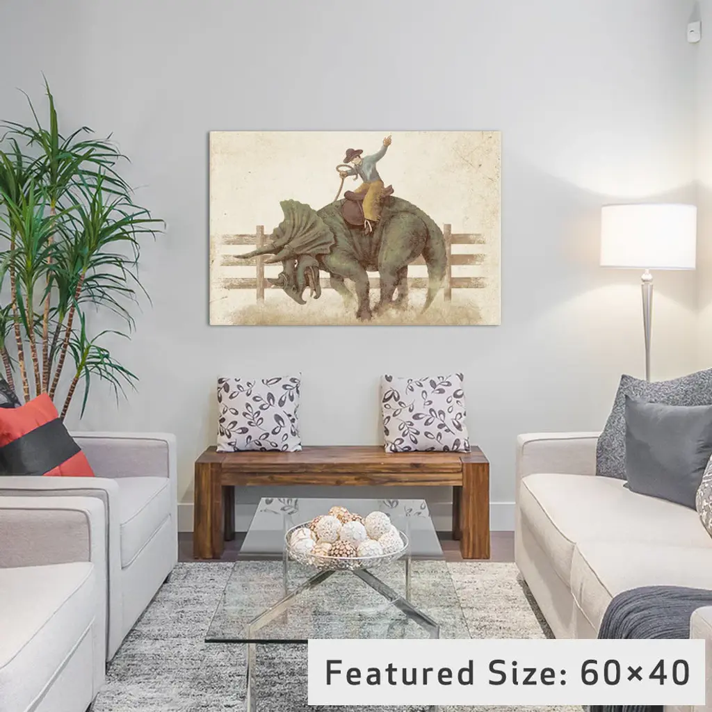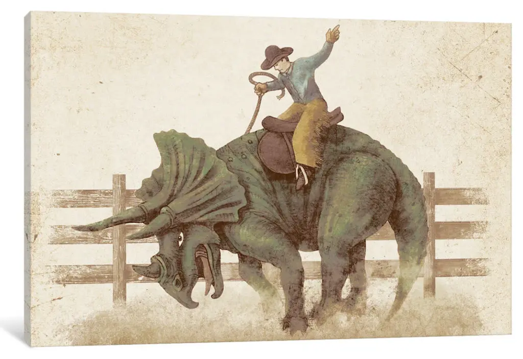 "Dino Rodeo Landscape" By Terry Fan, 18x12x1.5