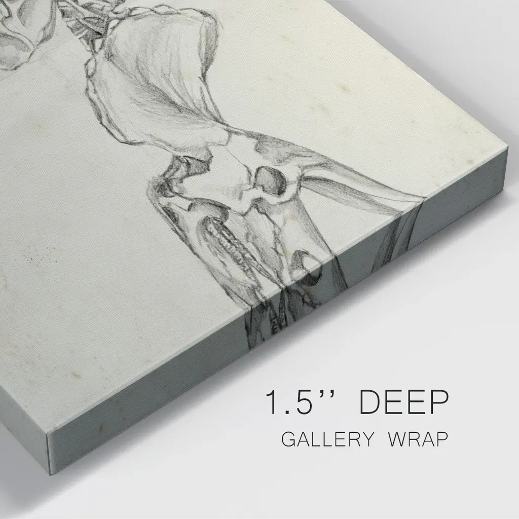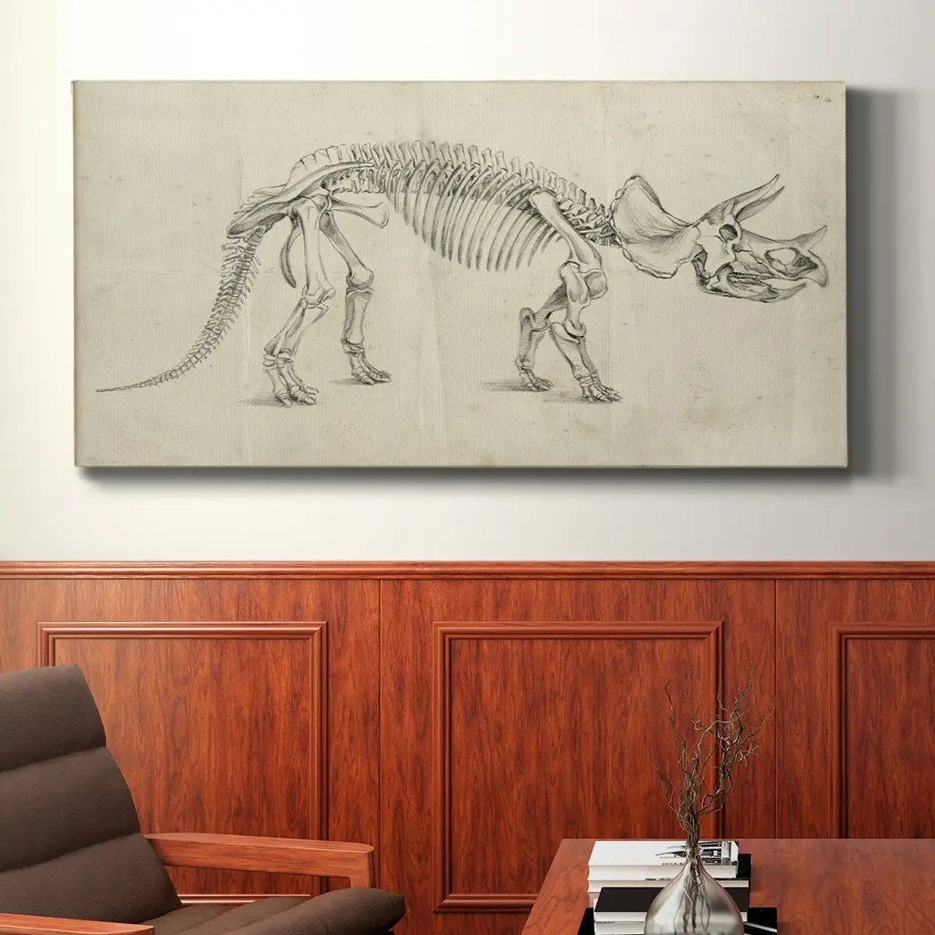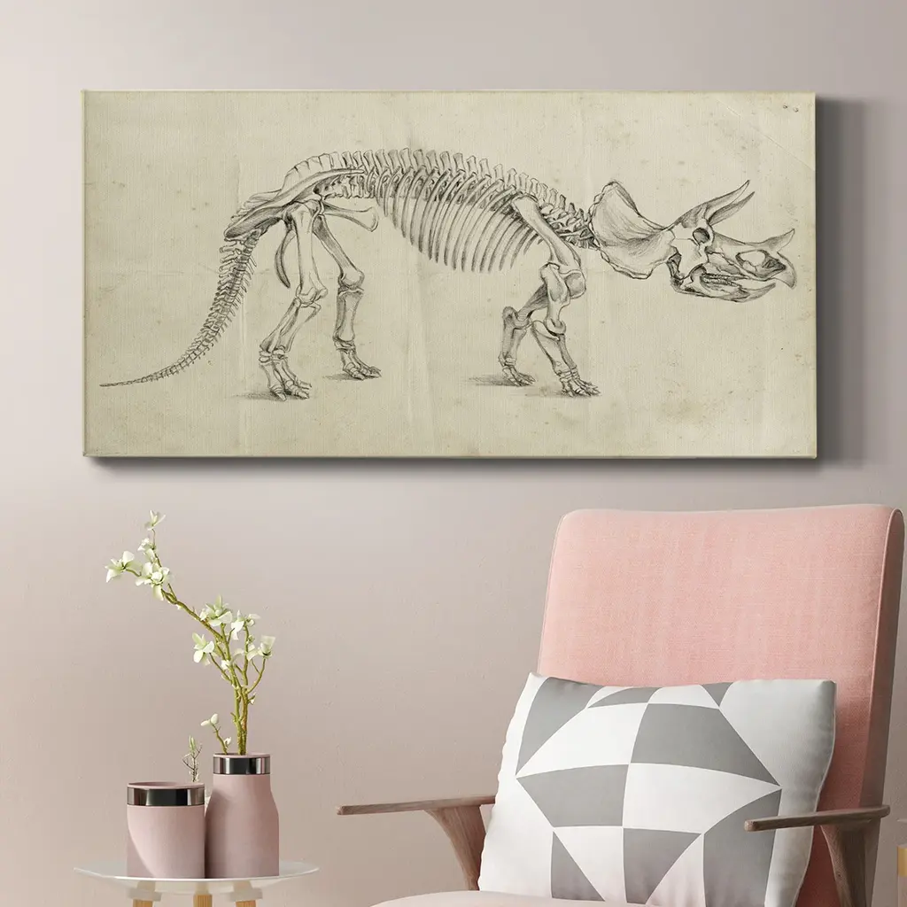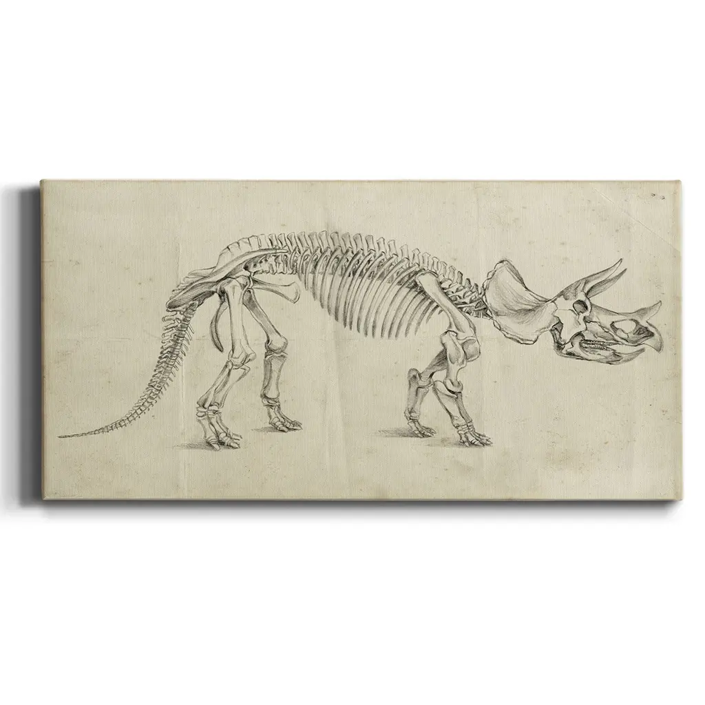 Dinosaur Study II- Premium Gallery Wrapped Canvas - Ready to Hang A premium hand stretched gallery wrapped canvas print created to last. Featuring a beveled a solid wood stretcher bar, each piece comes ready to hand 3 SIZES AVAILABLE 8''X16'' - Overall Size 12"X24'' - Overall Size 20''x40'' - Overall Size Each piece is made to order. Built to Last Each piece comes ready to hang Solid wood stretcher Fade and Water resistant Made domestically